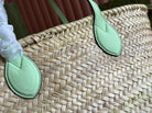 SMALL TOTE BAG 26 WITH LOGO IN NATURAL-COLORED STRAW AND LIGHT GREEN CALFSKIN HANDLE