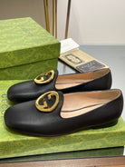 BLONDIE LOGO-PLAQUE LOAFERS IN BLACK CALFSKIN