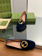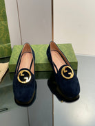 BLONDIE LOGO-PLAQUE LOAFERS IN SPACE BLUE SUEDE