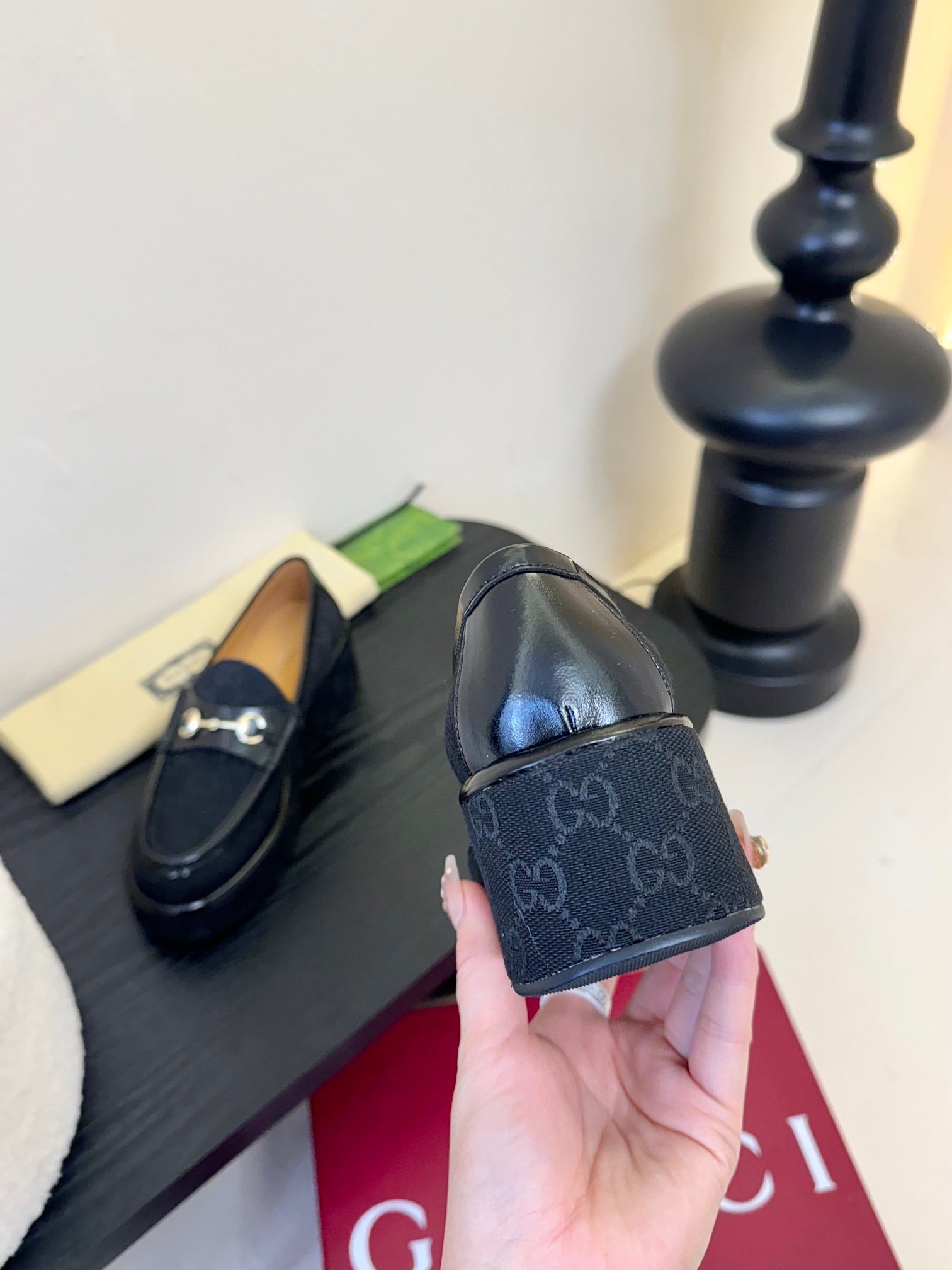 GC 2025 Horsebit Wedge Loafer Navy Blue Canvas Cowhide 296841