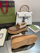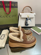 GG LOAFER IN PEANUT BROWN JACQUARD AND CHOCOLATE BROWN CALFSKIN WITH BEIGE WOOL LINING