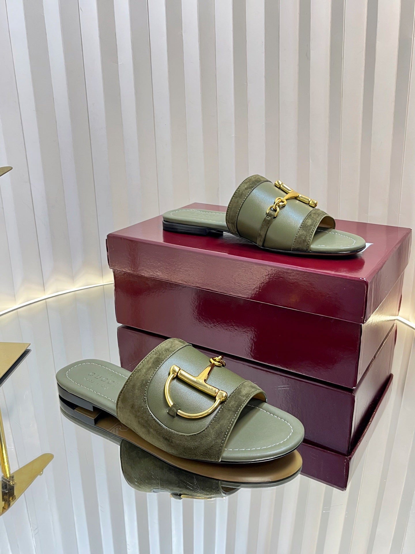 GC 25 Horsebit Sandals 10mm Dark Green Suede Sheepskin 294651