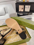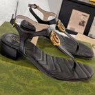 GC Double G Block Heel Thong Sandals Black Leather 292410