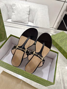 GC Horsebit Thong Sandals Black Leather 292477