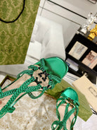 GG CRYSTAL HIGH HEEL SANDAL JADE GREEN CALFSKIN SPECIAL