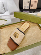 GG EXCLUSIVE SLIDE SANDAL CARAMEL AND CREAM SEDGE