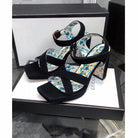 GG HIGH SANDAL BLACK SUEDE WITH PATTERNS