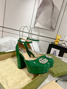 HIGH SANDAL SQUARE HEEL 12 CM IN DARK GREEN CALFSKIN