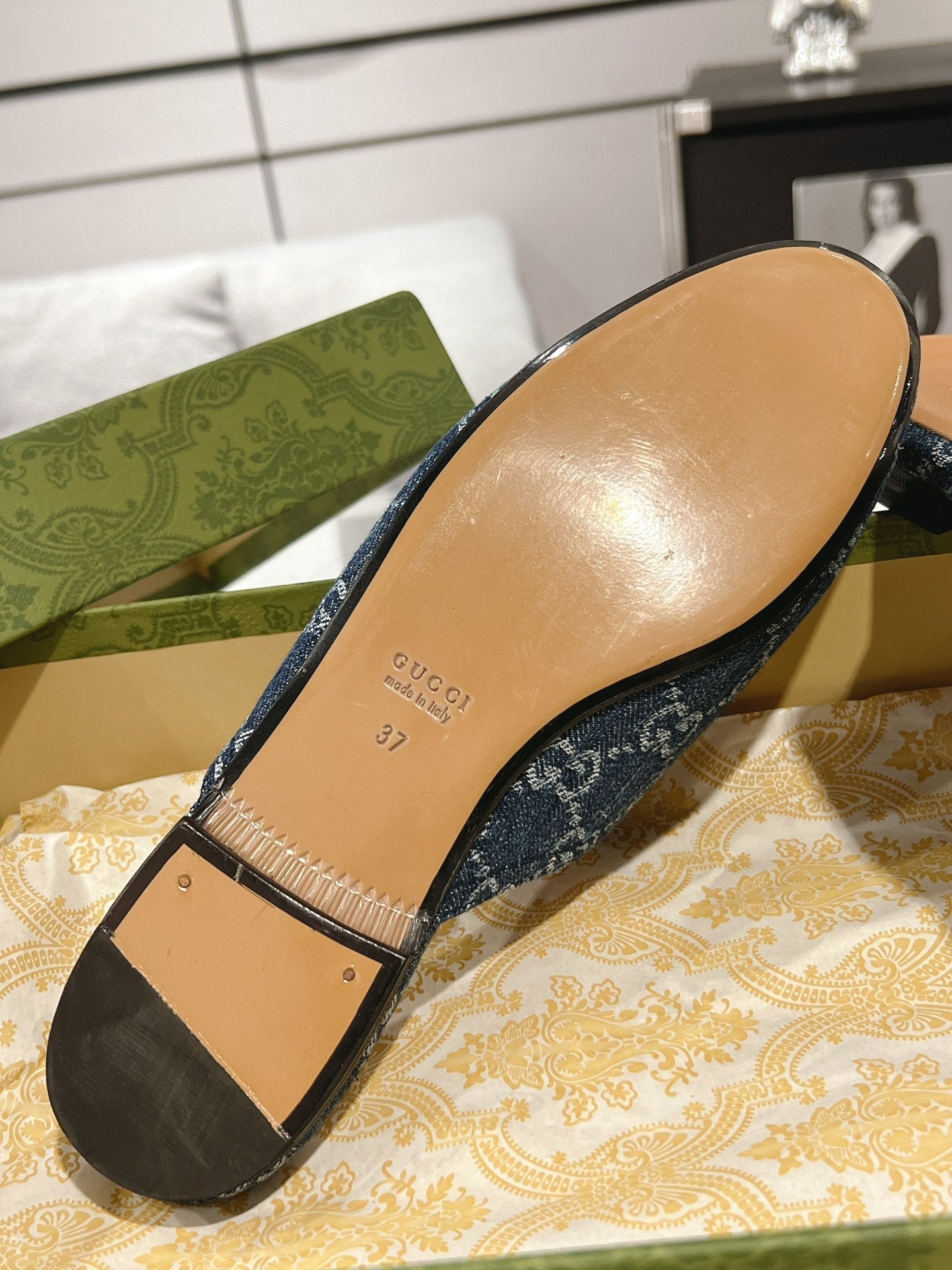 MEN'S MULE WITH HORSEBIT IN DENIM BLUE MONOGRAM JACQUARD FABRIC