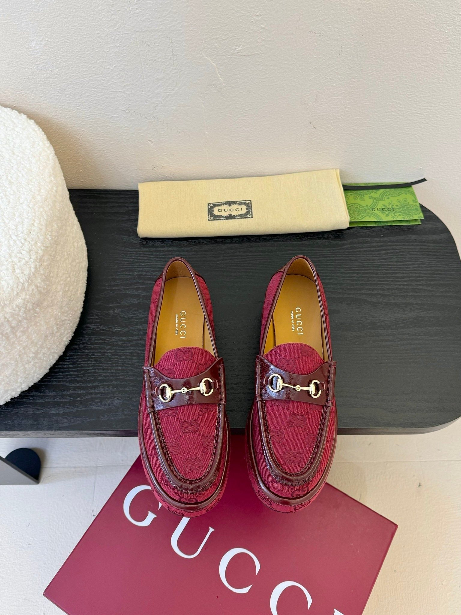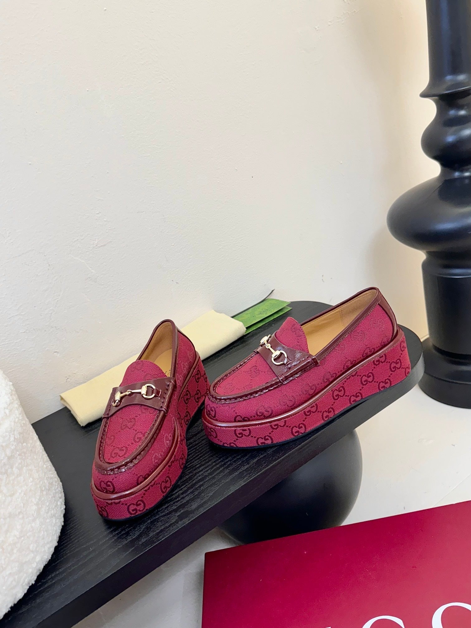GC 2025 Horsebit Wedge Loafer Red Canvas Cowhide 296842