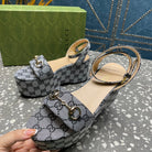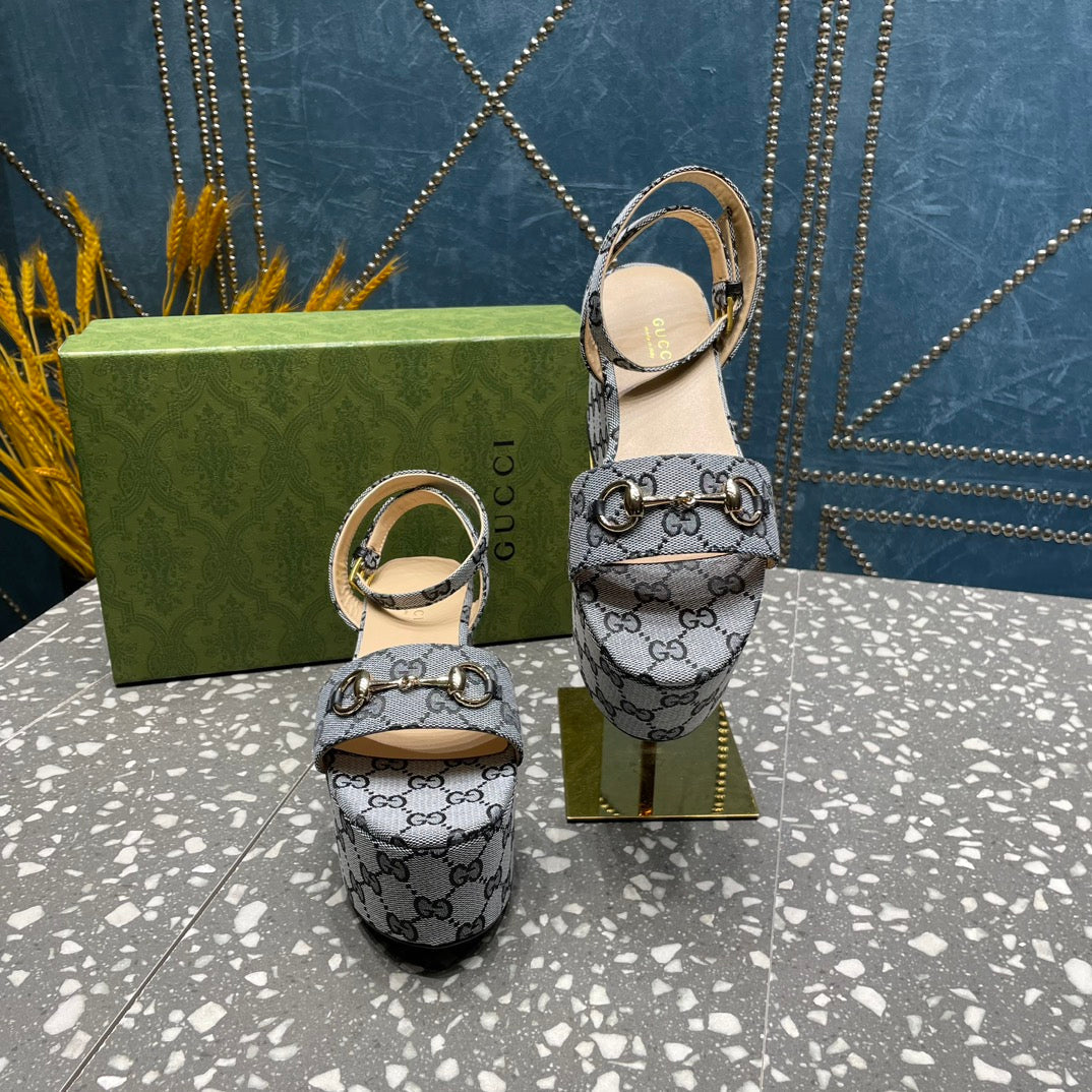 GG HORSEBIT FLATFORM SANDAL LEAD CALFSKIN
