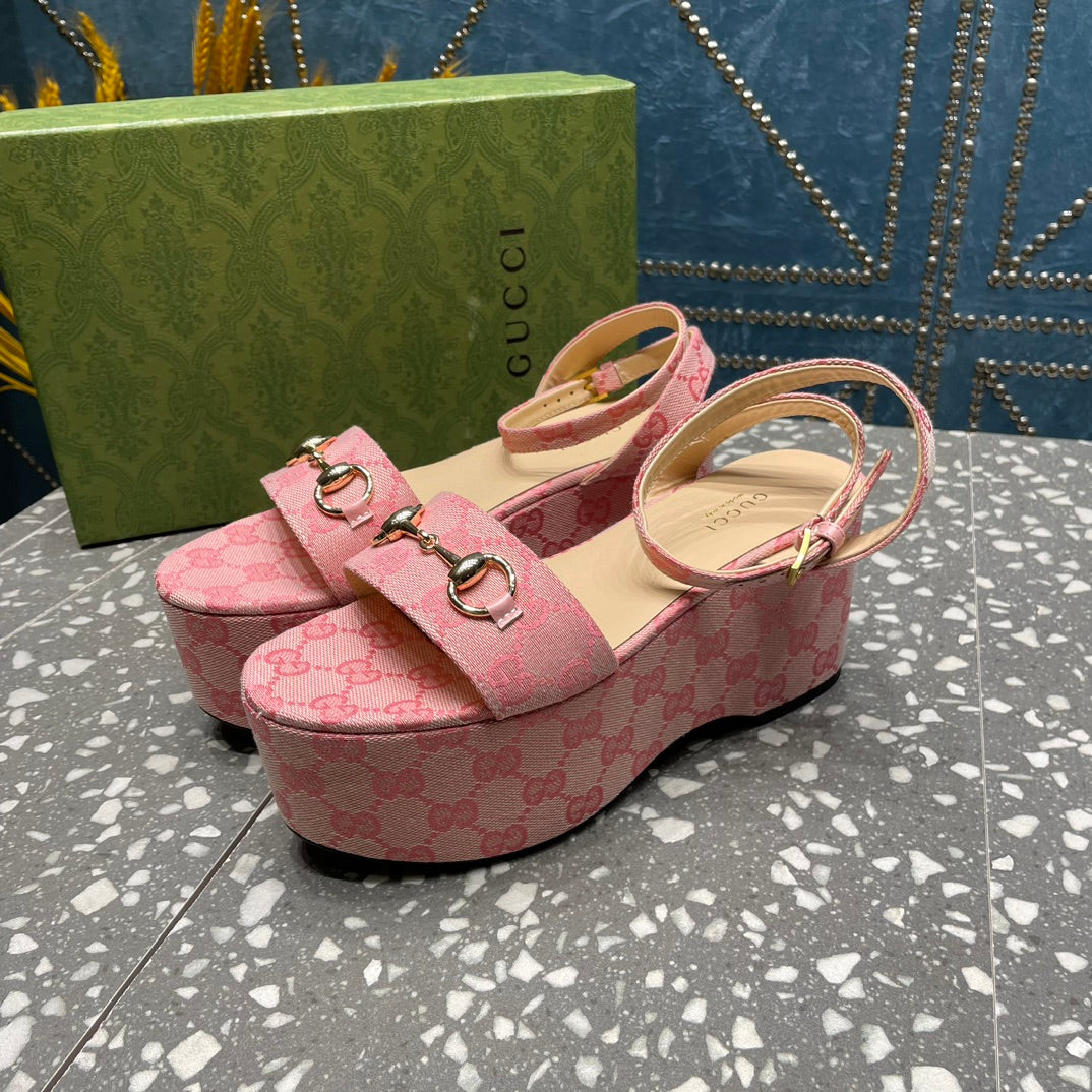 GG HORSEBIT FLATFORM SANDAL LIGHT PINK CALFSKIN