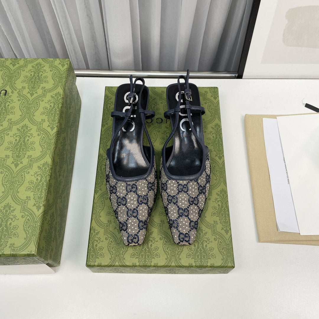sling back pump 40 beige and blue canvas