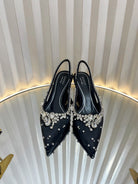 GC 2025 Crystal Embellished 55mm High Heels Slingbacks Black Silk Sheepskin 294526