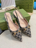 GC Horsebit Slingback Pump 10mm Beige mix Blue Canvas Sheepskin 294553
