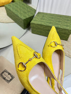 GC Horsebit Slingback Pump 10mm Yellow Canvas Sheepskin 294541