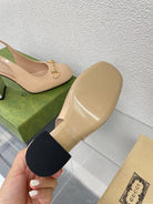 GG WOMEN'S HORSEBIT SLINGBACK 95MM IN TAN BEIGE CALFSKIN WITH RHINSTONES