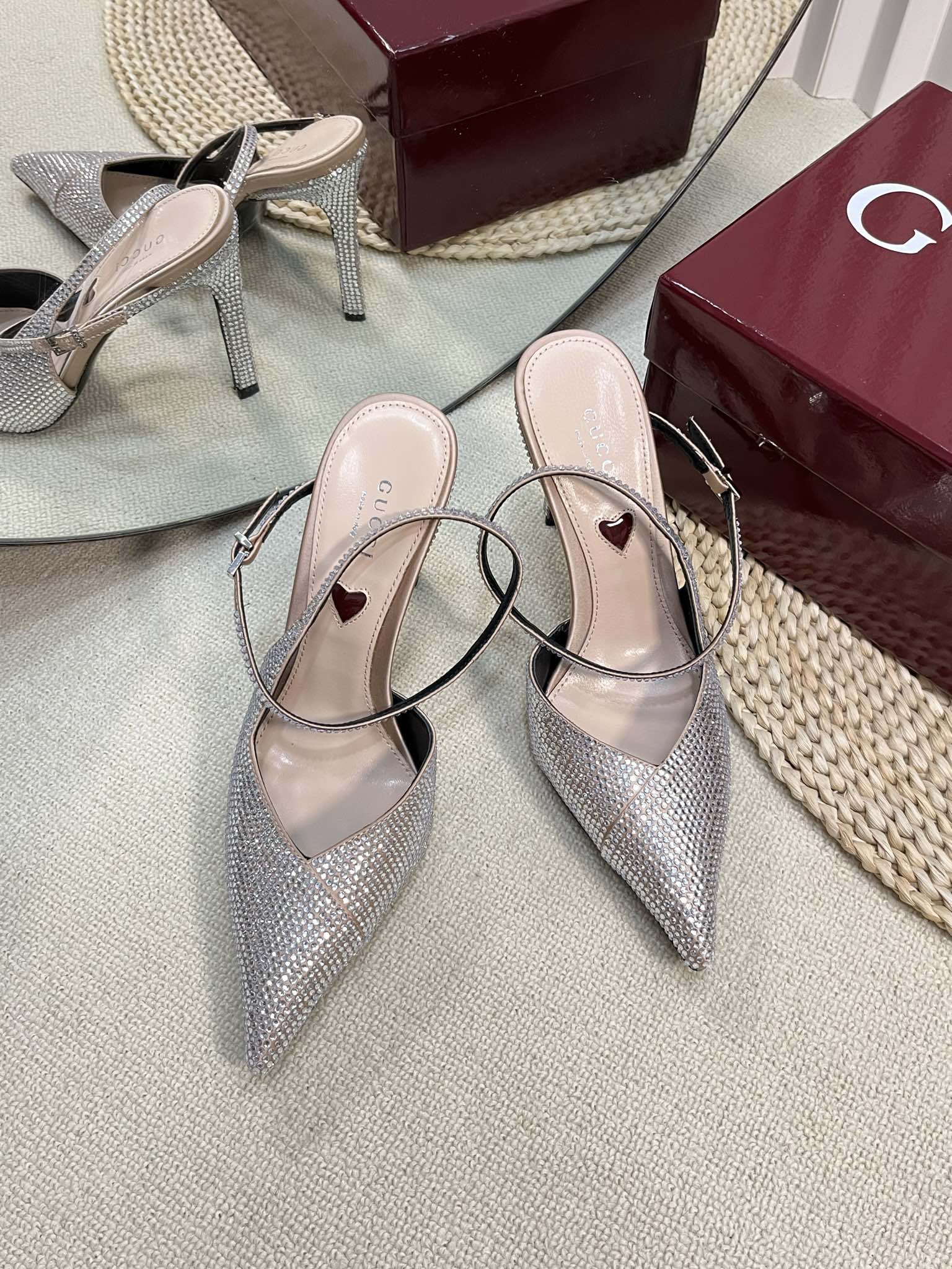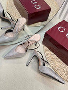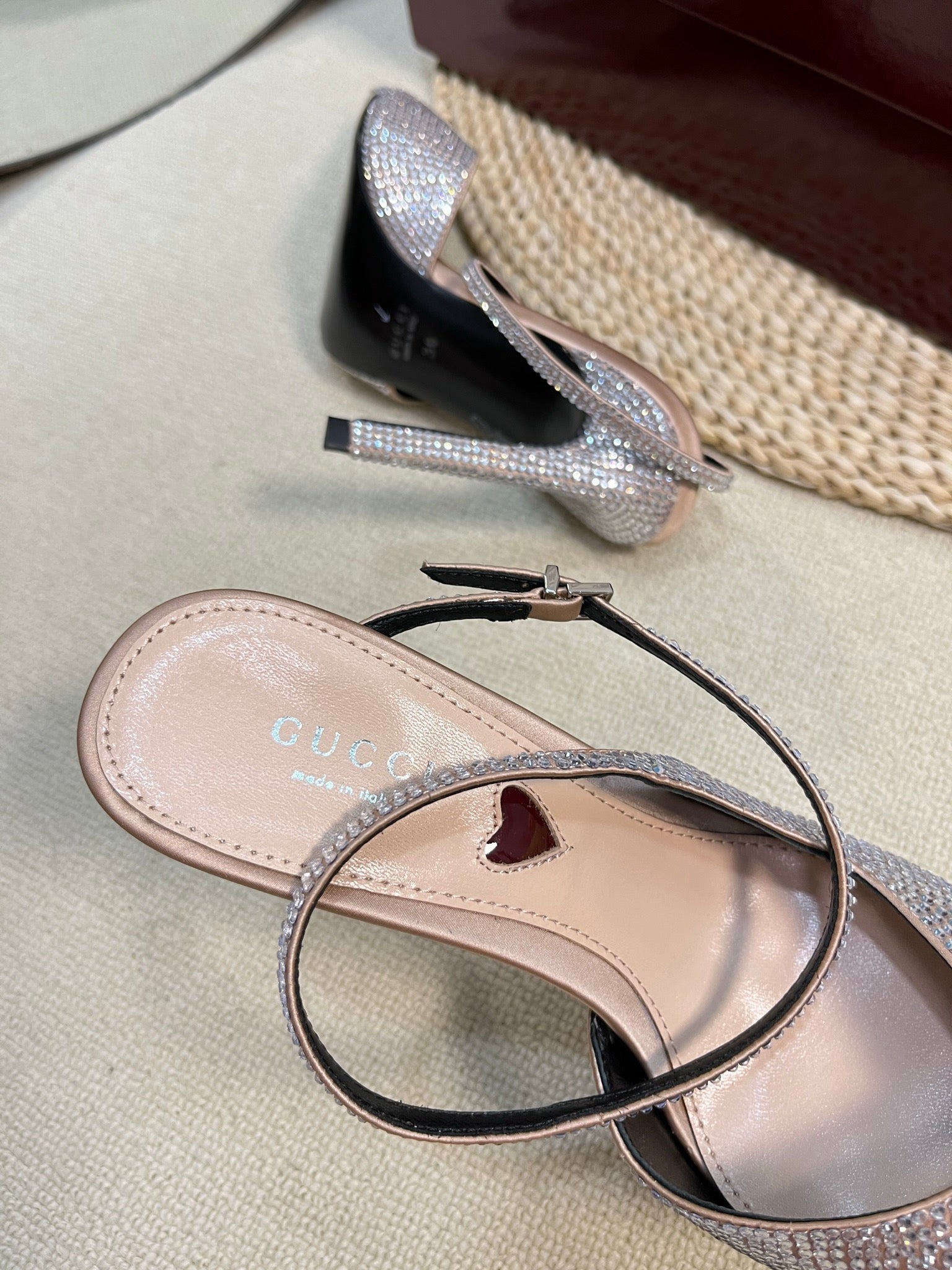 HIGH SLINGBACK 10 CM IN BEIGE SILK WITH FULL RHINSTONES