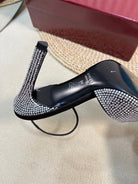 HIGH SLINGBACK 10 CM IN BLACK SILK WITH FULL RHINSTONES
