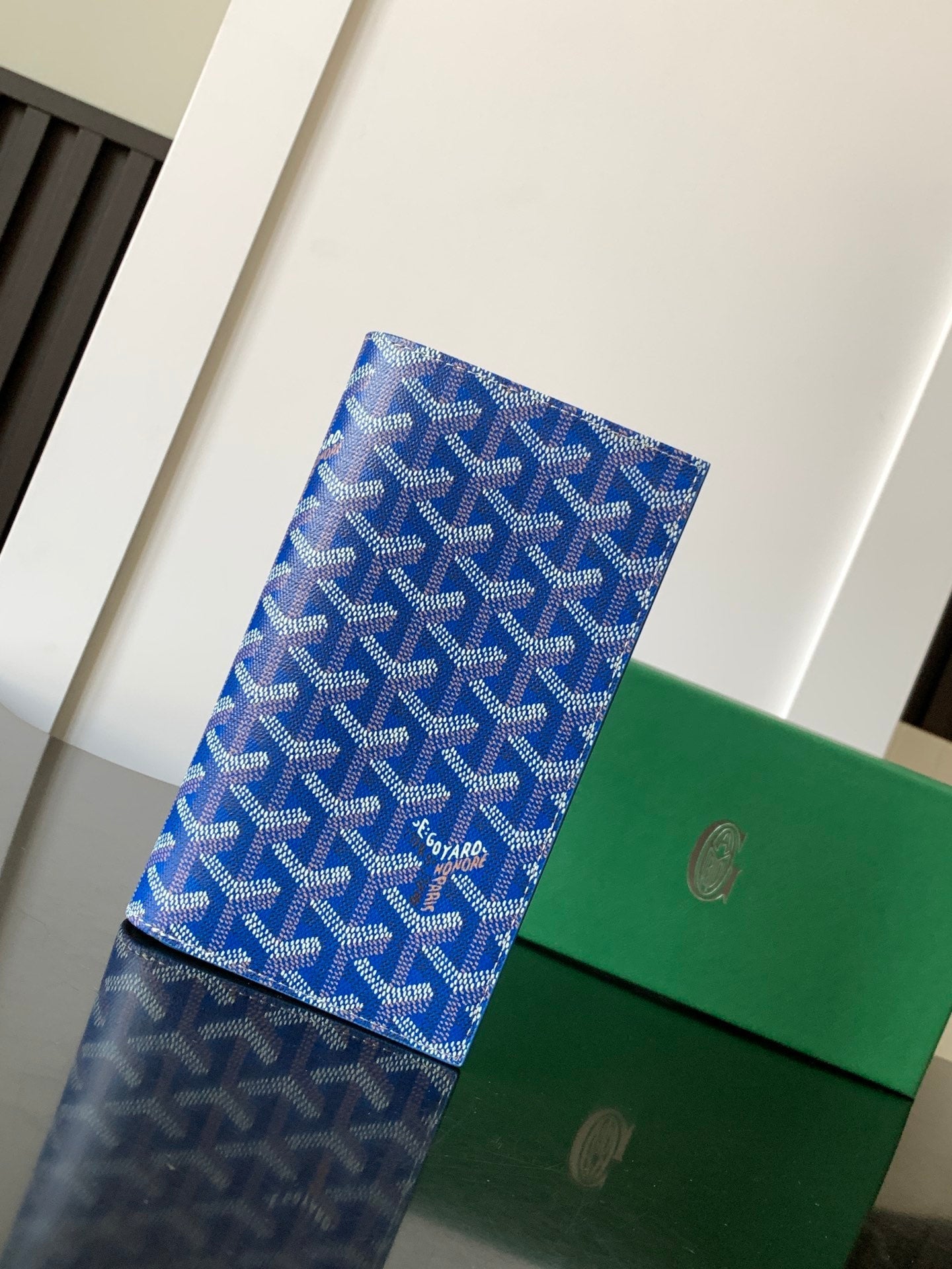 RICHELIEU CHECKBOOK WALLET 19 IN SAPPHIRE BLUE GOYARDINE CANVAS AND CALFSKIN