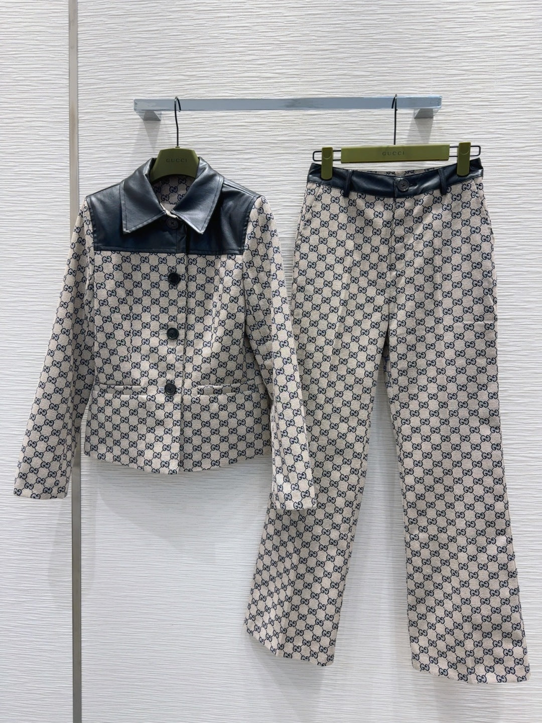Gucci 2025 Set Beige Black Jacquard Fabric