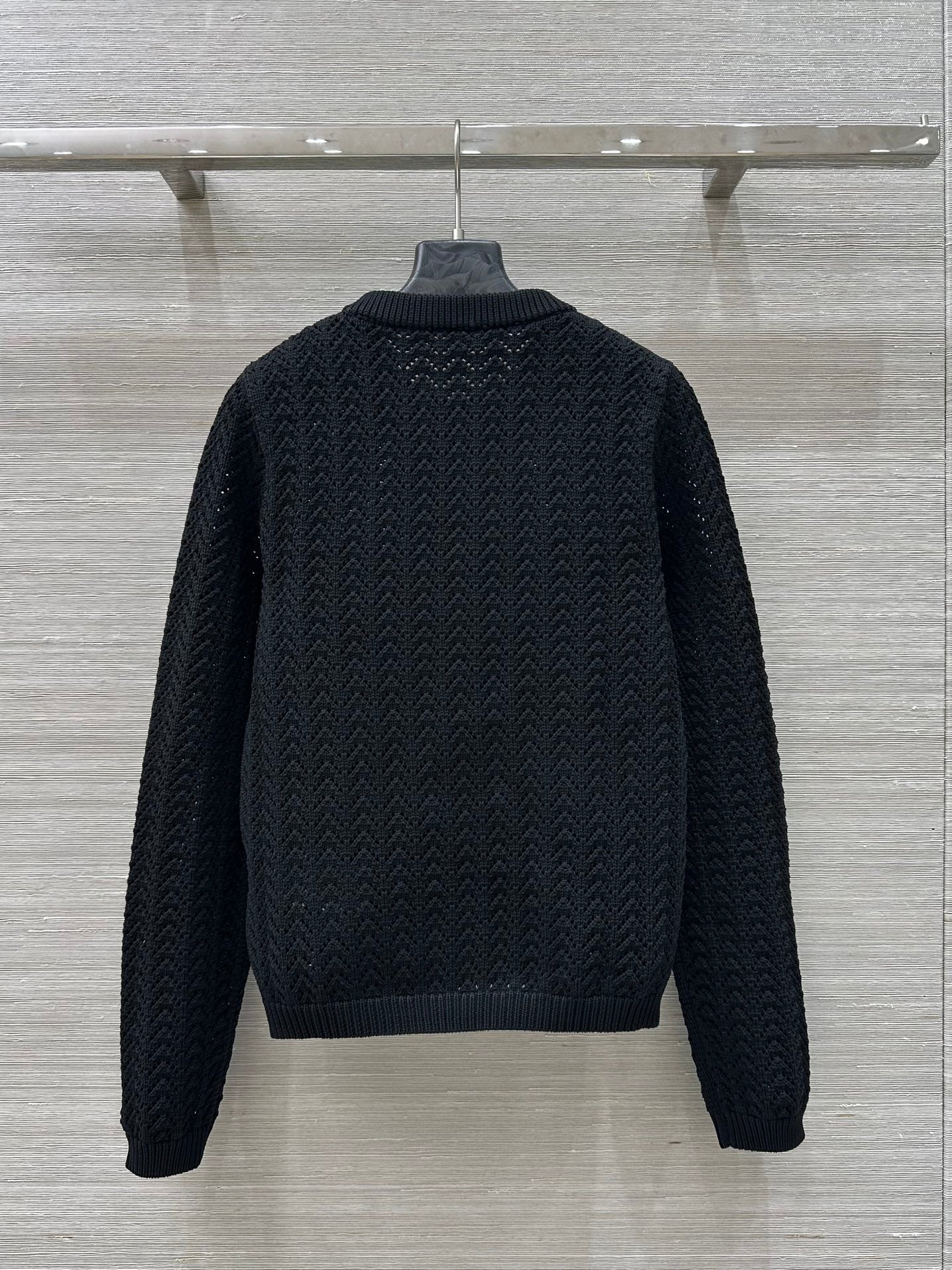 Gucci 25 Hollow Knitted Cardigan Black Polyester Fiber