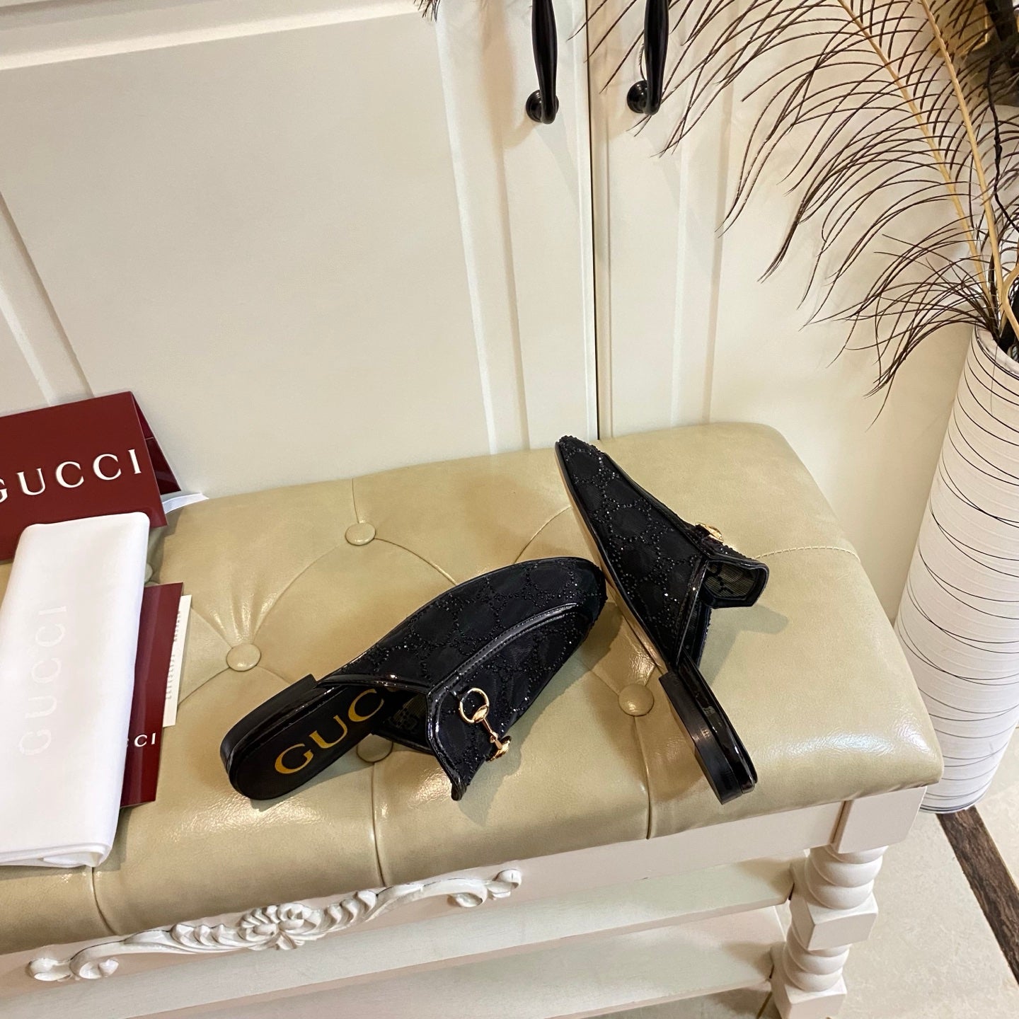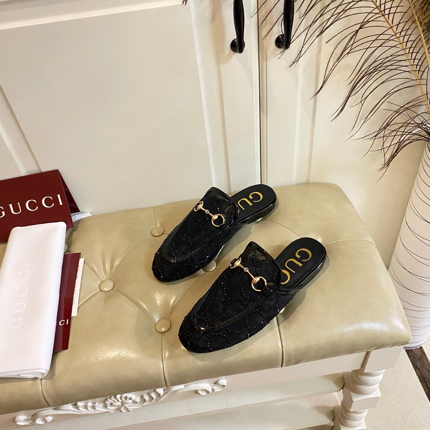 GG PrinceTown Mule Black Mesh With Crystal