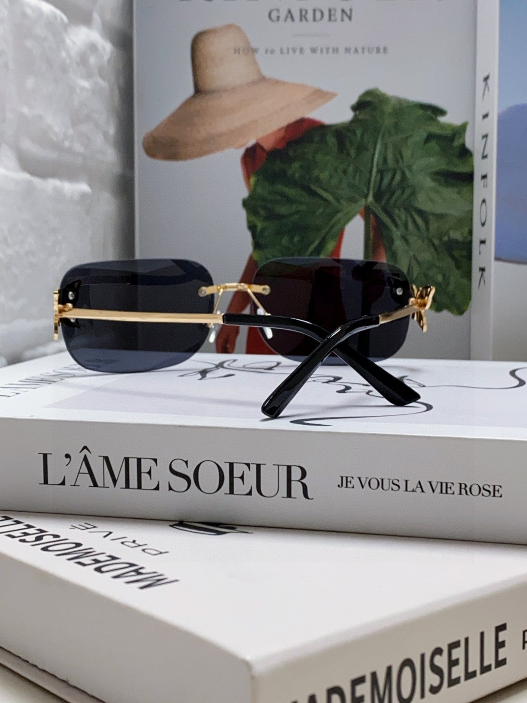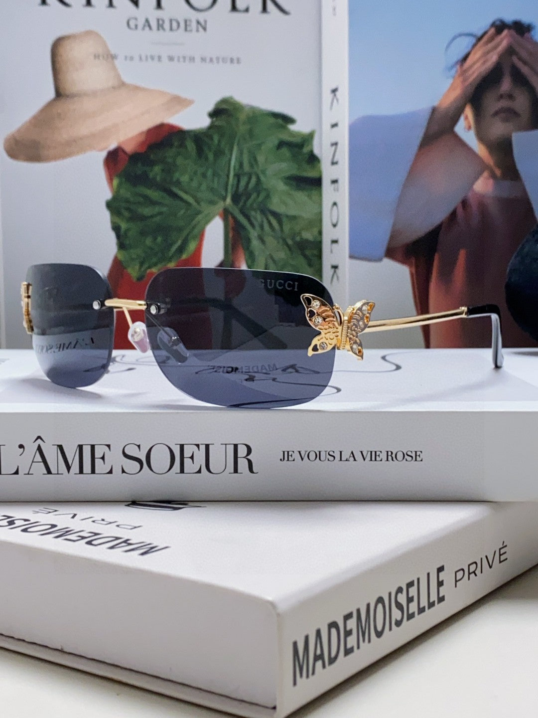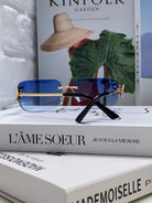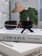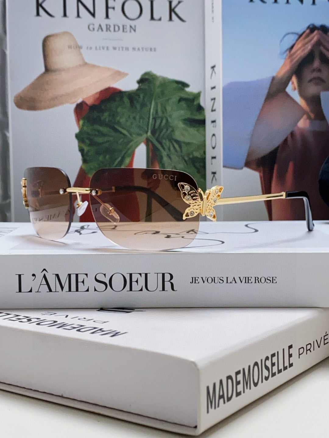 BUTTERFLY EMBELLISHED RIMLESS RECTANGULAR FRAME SUNGLASSES 570245 IN METAL
