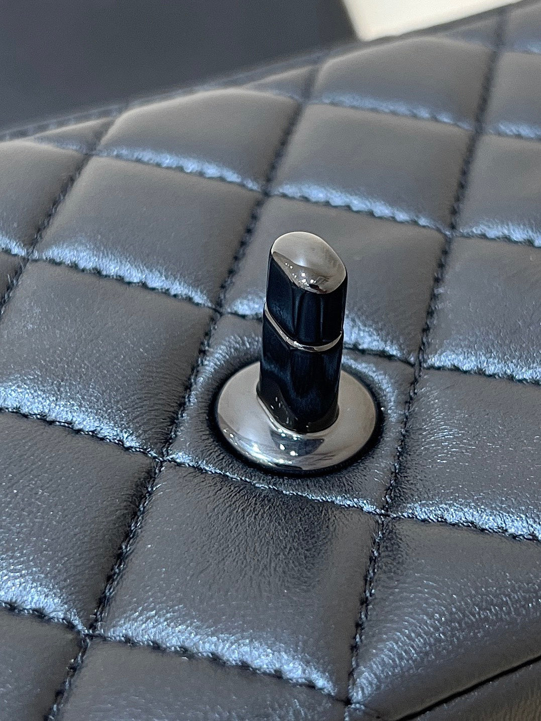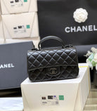 25C Mini Flap Bag Top Handle 20cm Black Lambskin Black Hardware