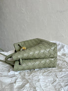 BV SMALL ANDIAMO 25CM LIGHT GREEN LAMBSKIN