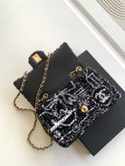 CC 24S Flap Bag Mini 21cm Black White Sequin Gold Hardware 238439