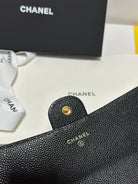 CC Classic Long Flap Wallet Black Quilted Caviar Gold Buckle 243676