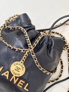 CC 22 Hobo Bag 19cm Black Grained Calfskin Gold Hardware