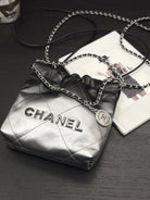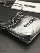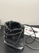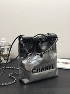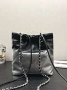 CC HOBO MINI 20CM BLACK GREY LAMBSKIN SILVER HARDWARE