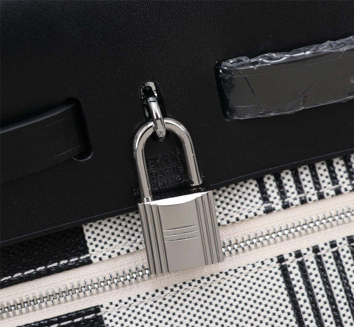 HM HERBAG ZIP 31 BLACK AND WHITE LINE MOTIF CANVAS