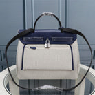 HM HERBAG ZIP 31 NAVY AND CREAM MONOGRAM CANVAS