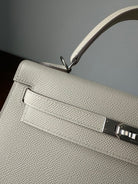 HM KELLY 25CM WHITE EPSOM SILVER HARDWARE