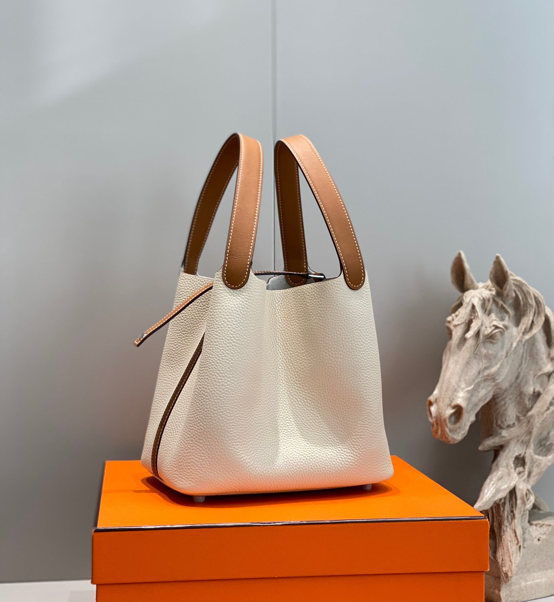 HM PICOTIN LOCK 22 WHITE AND BROWN TOGO LEATHER