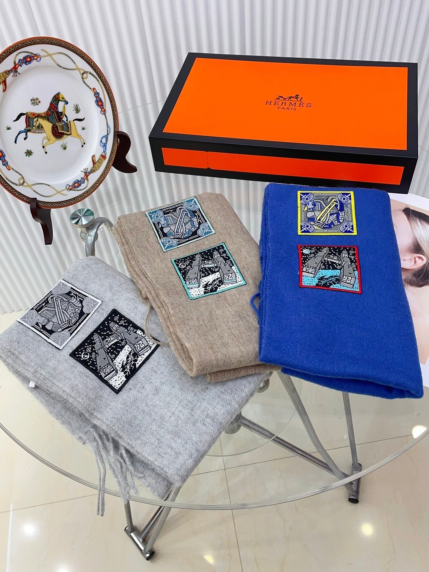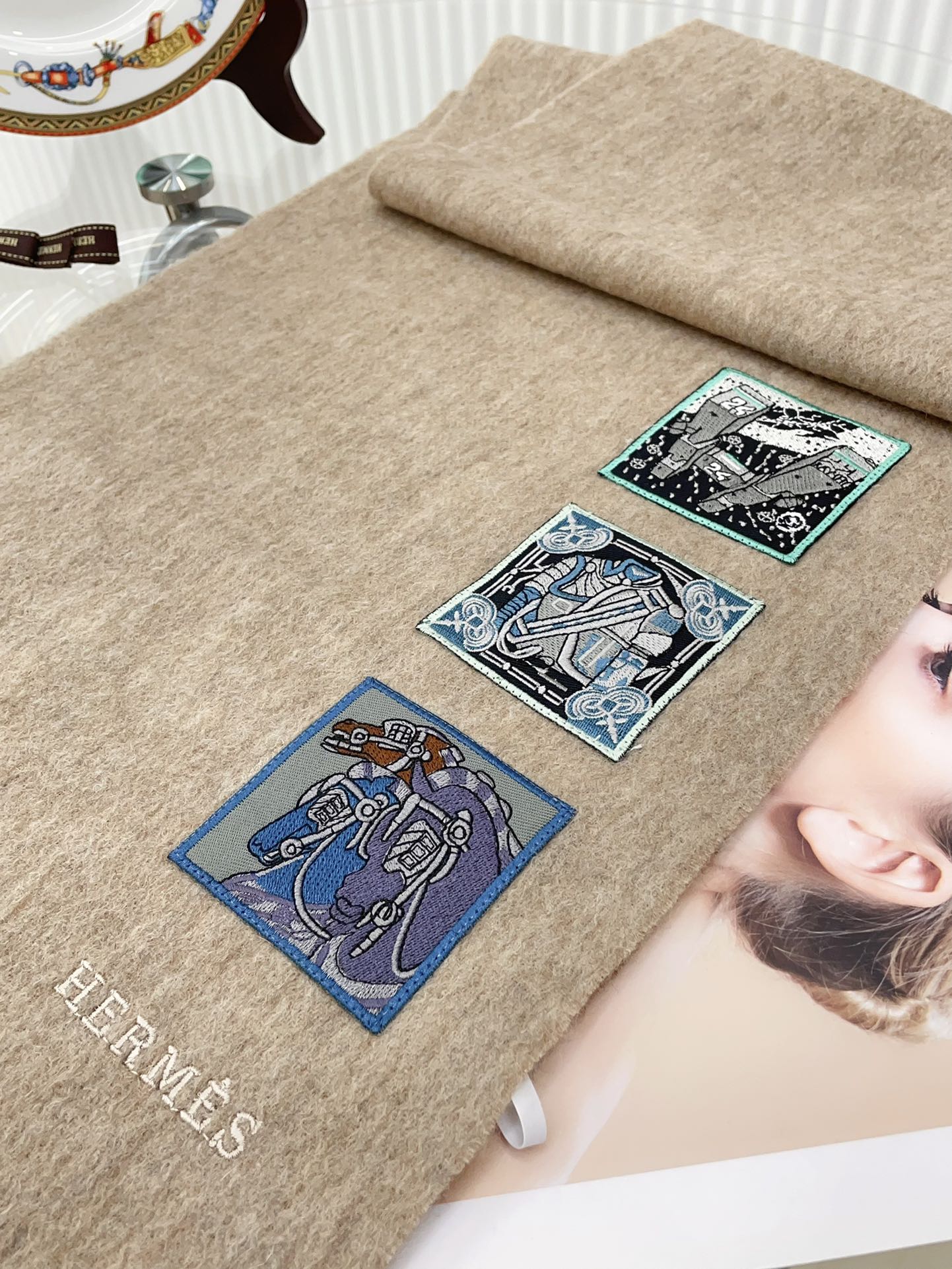 BADGES SOIE MUFFLER 180 CM SCRAF IN TAN BROWN CASHMERE