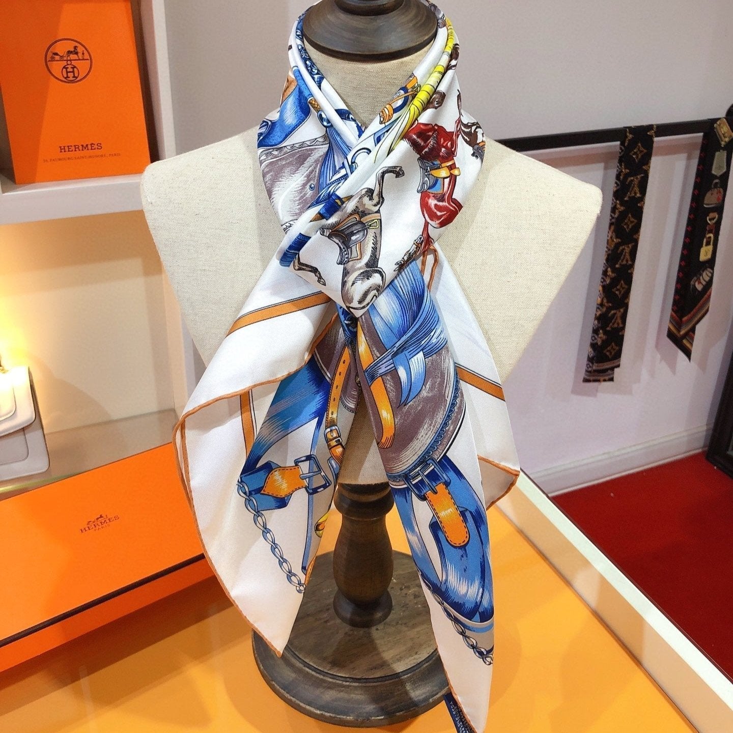 Cavalcades Scarf 90 CM In White Colorful Silk Twill 288860