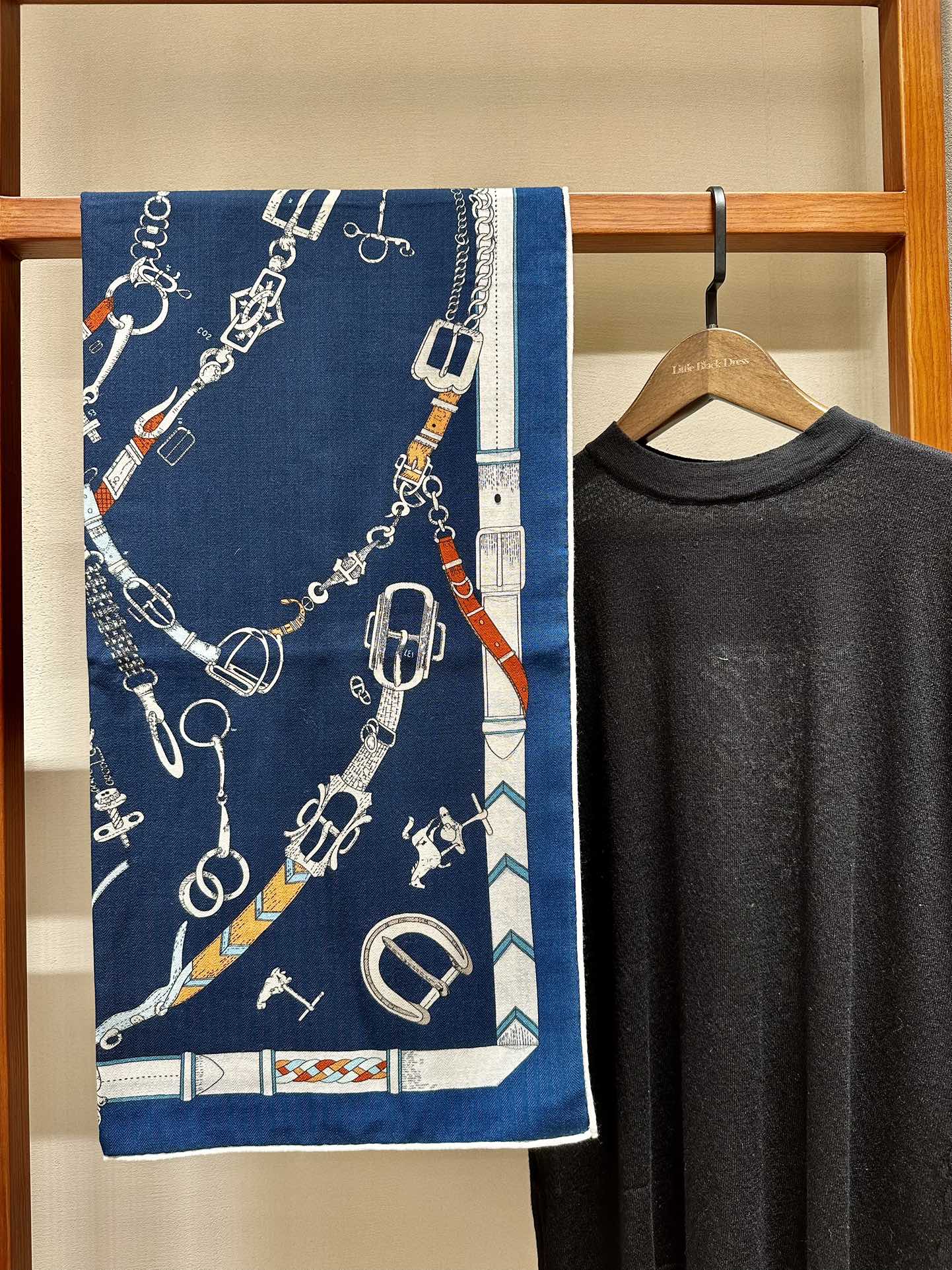 Chevaux Dechaines Shawl 135 CM IN Dark Blue Colorful Cashmere Silk 373682