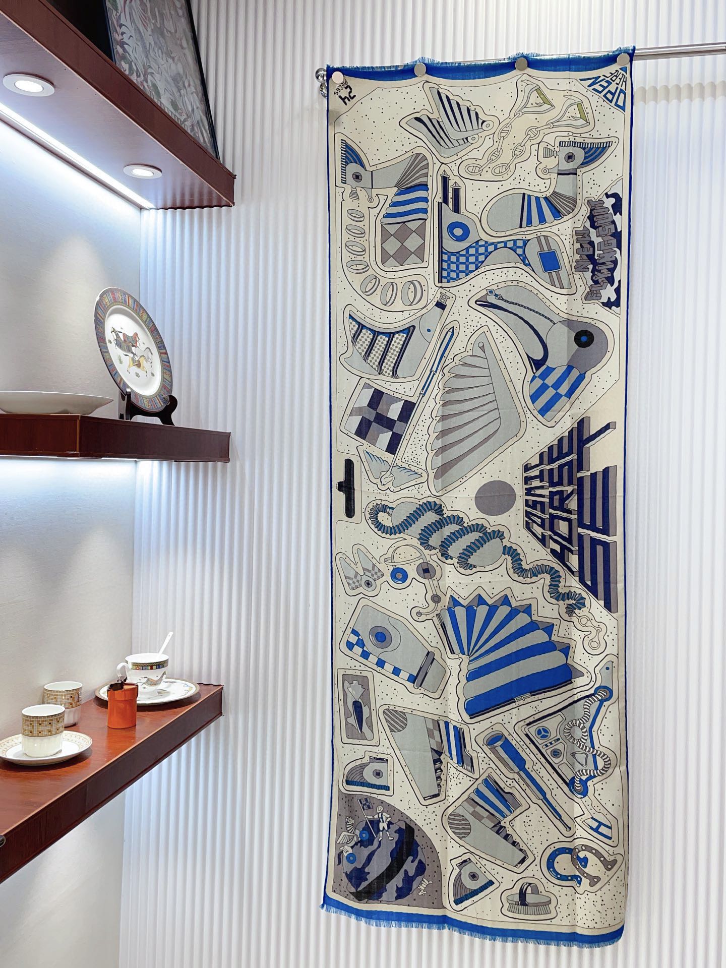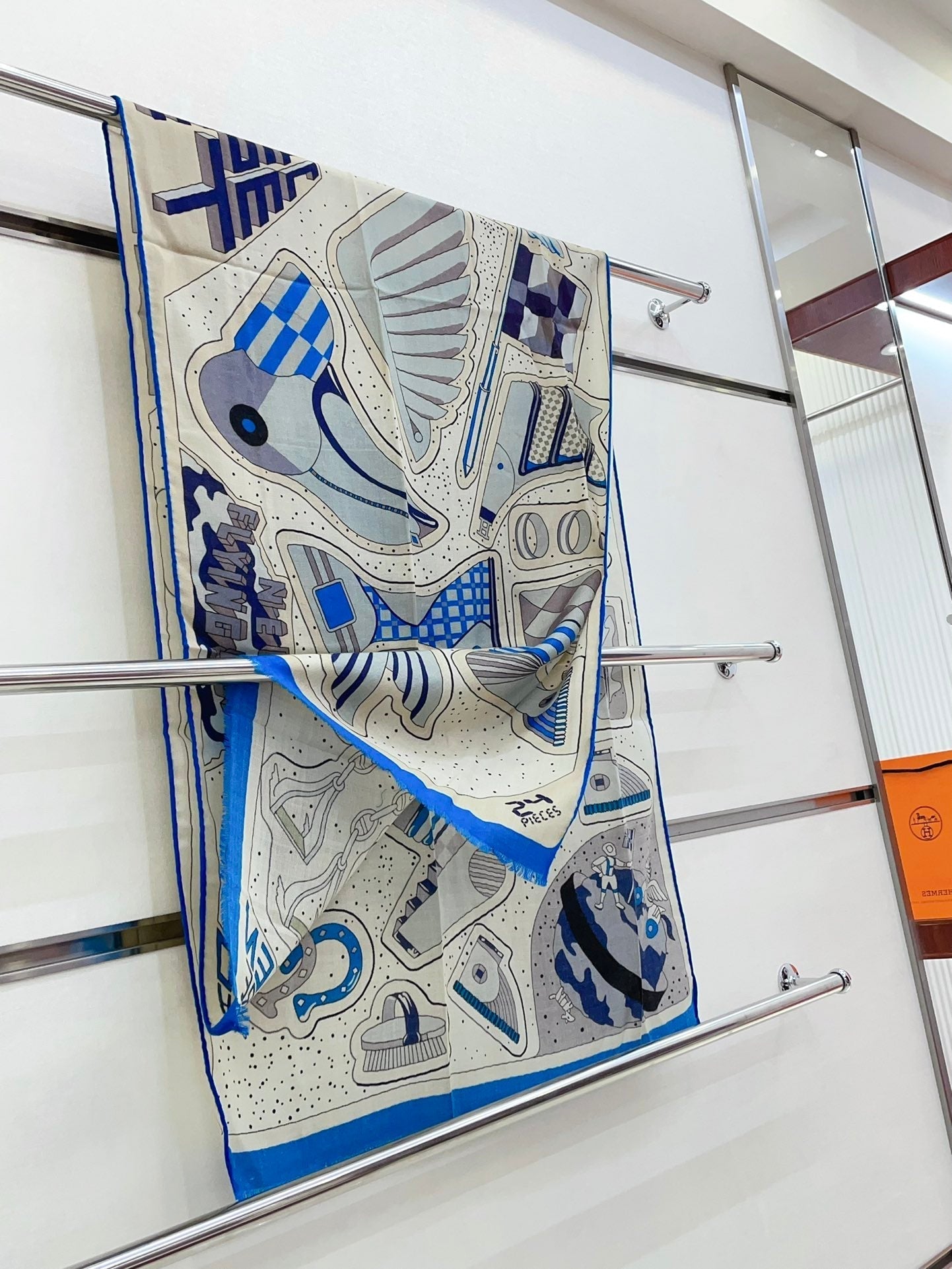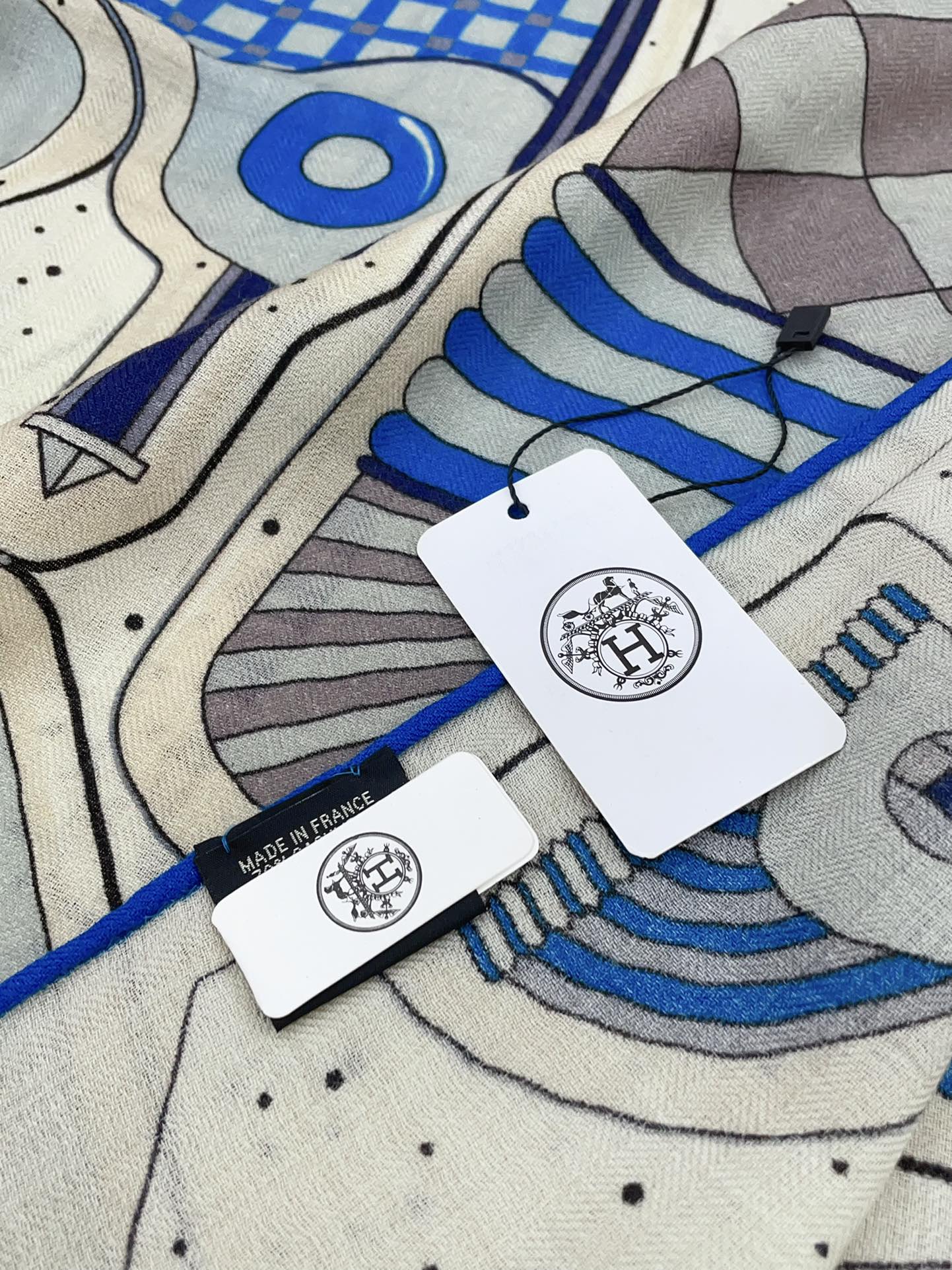 Cosmic Horse Set rectangle Scarf 180 CM In Blue Colorful Cashmere And Silk 308063