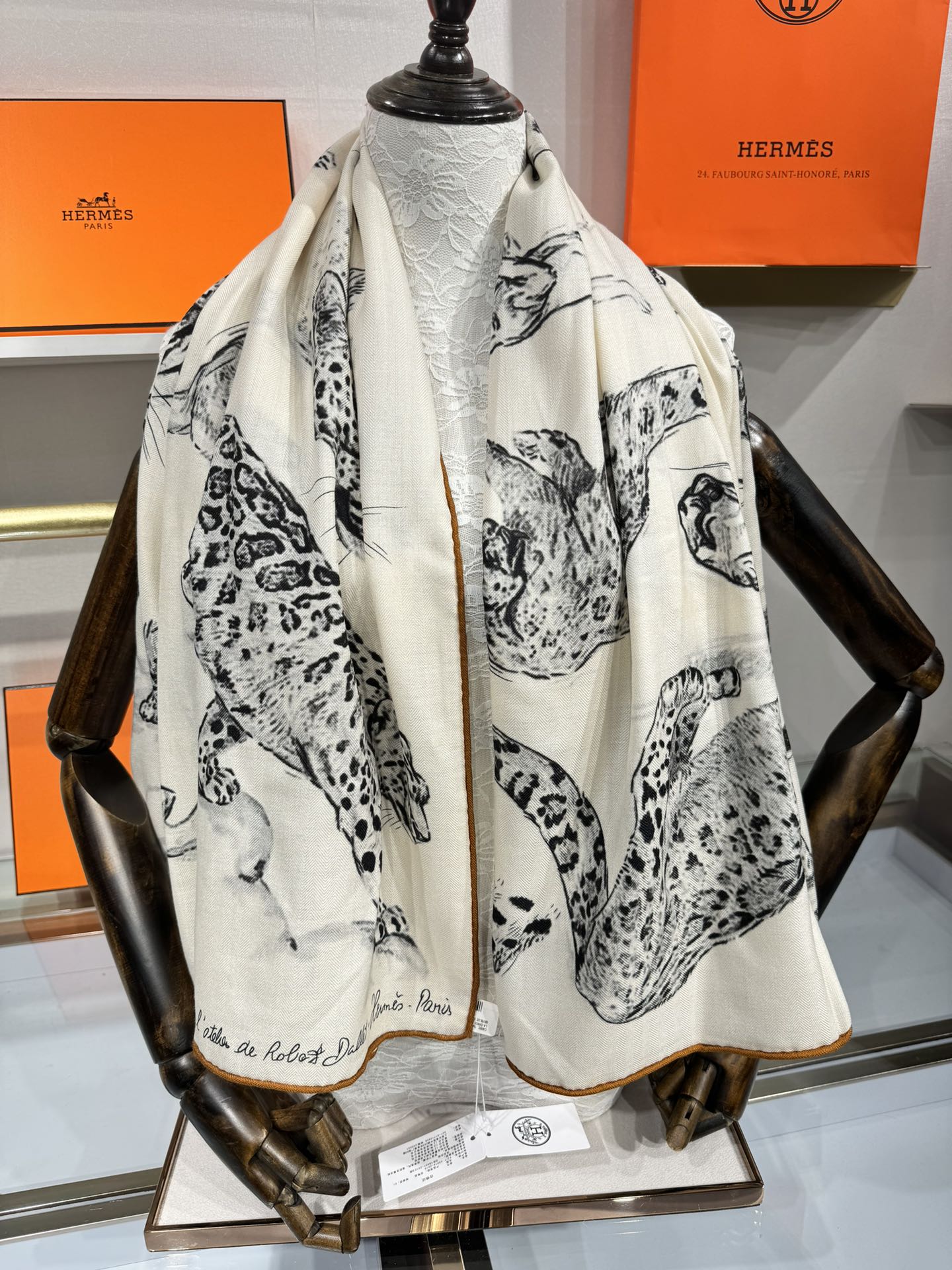 Dans L'atelier De Robert Dallet Sacrf 140 CM In White Black Cashmere And Mulberry Silk 379768