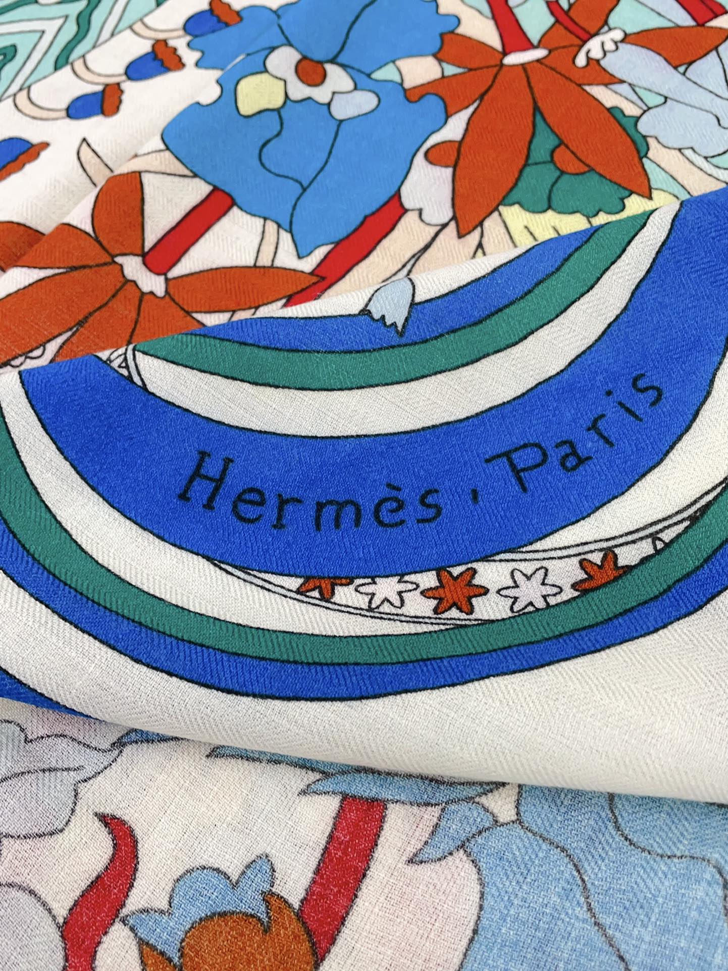 La Danse Du Printemps Scarf 140 In Light Blue Colorful Cashmere And Silk 344364