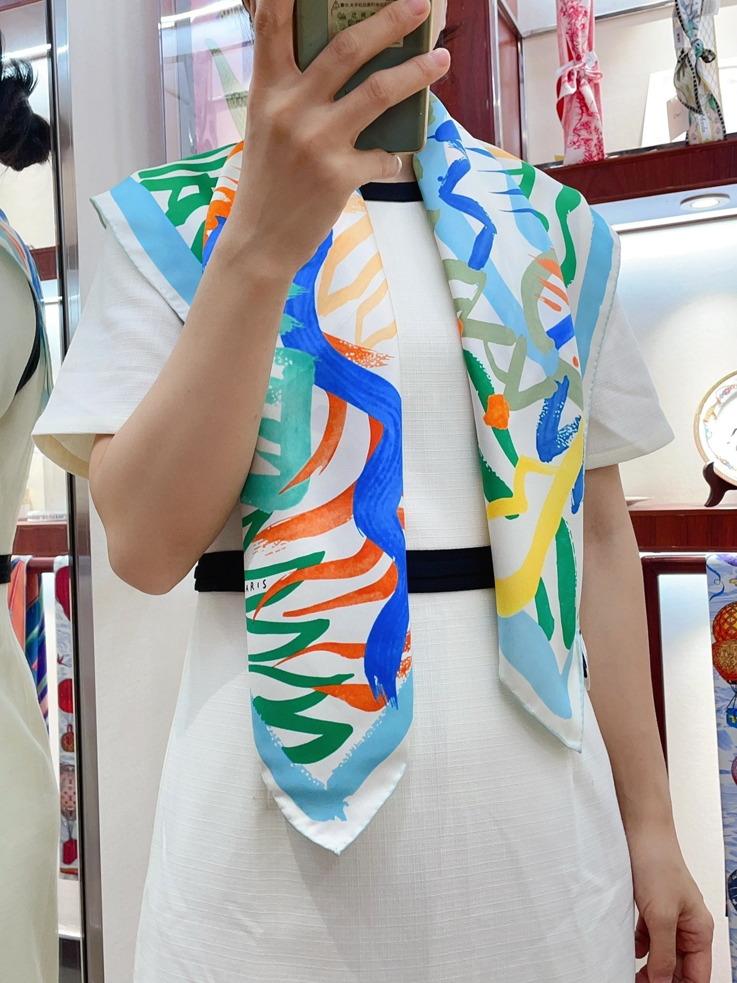 Le Cavalier A La Trompette Scarf 90 CM In Colorful Silk 208590