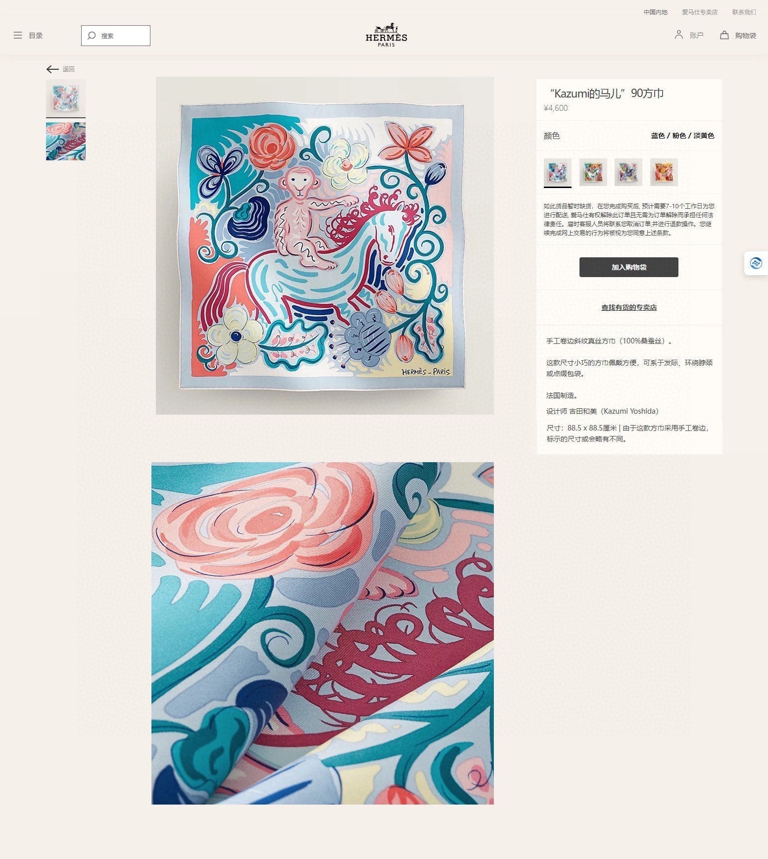 Le Cheval De Kazumi Scarf 90 CM Blue Colorful Silk Twill 347387