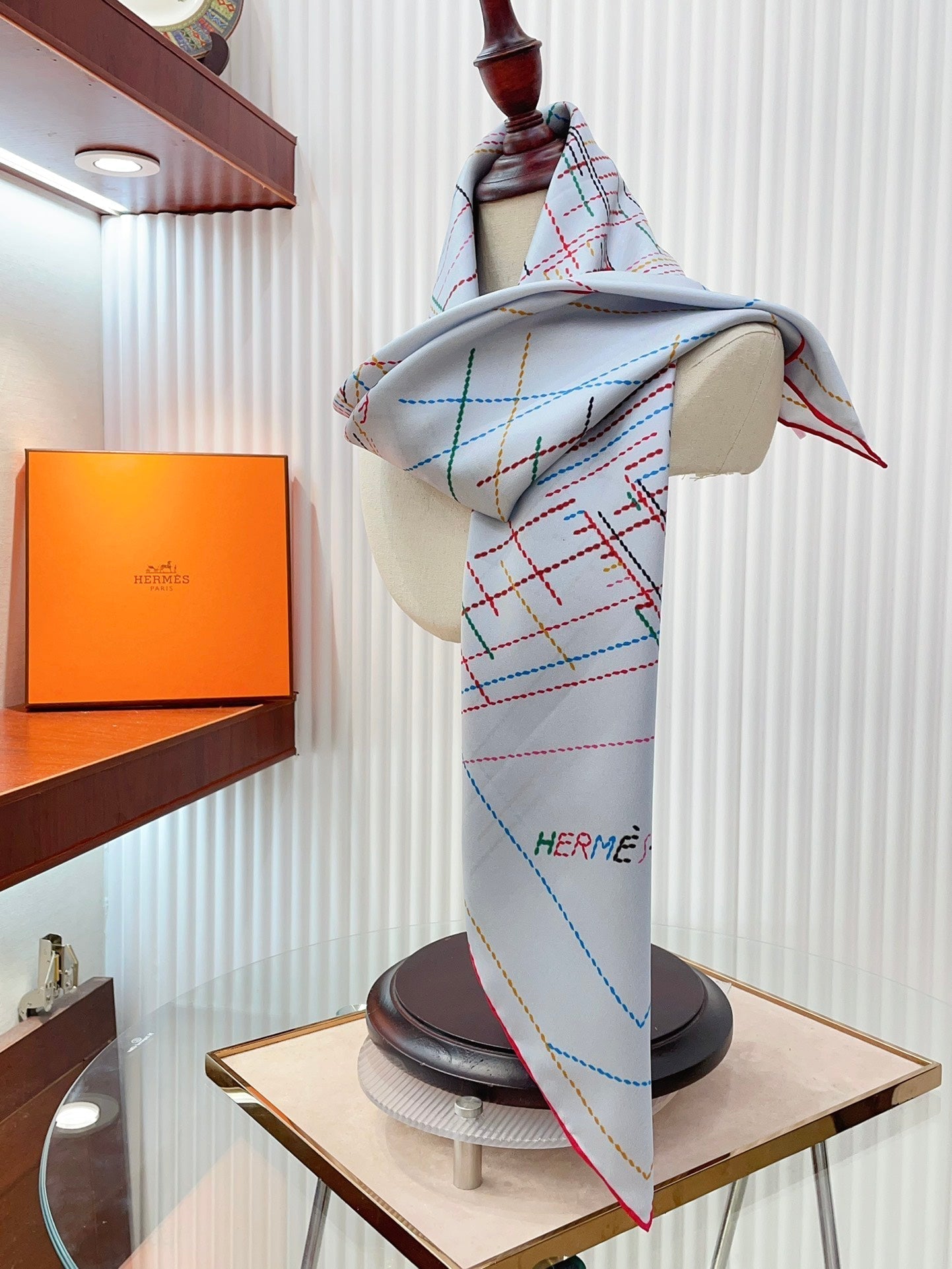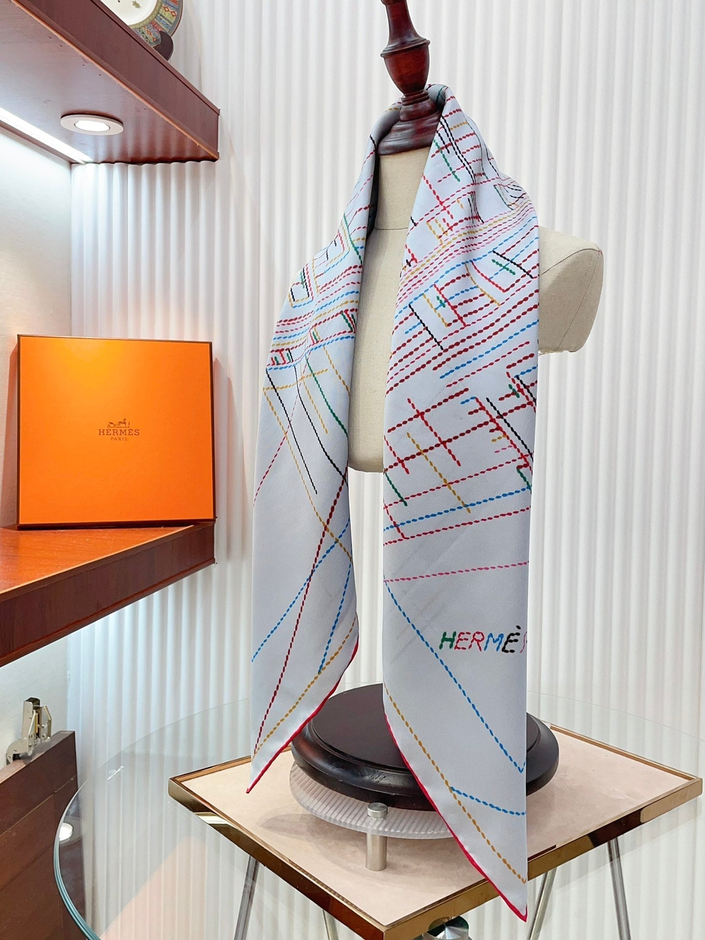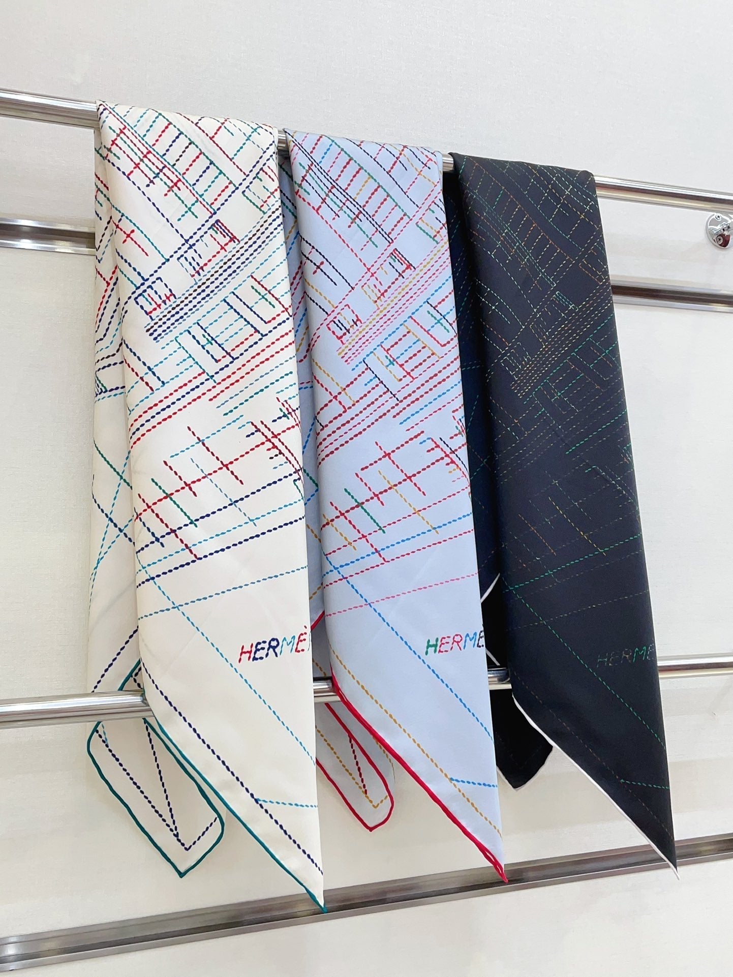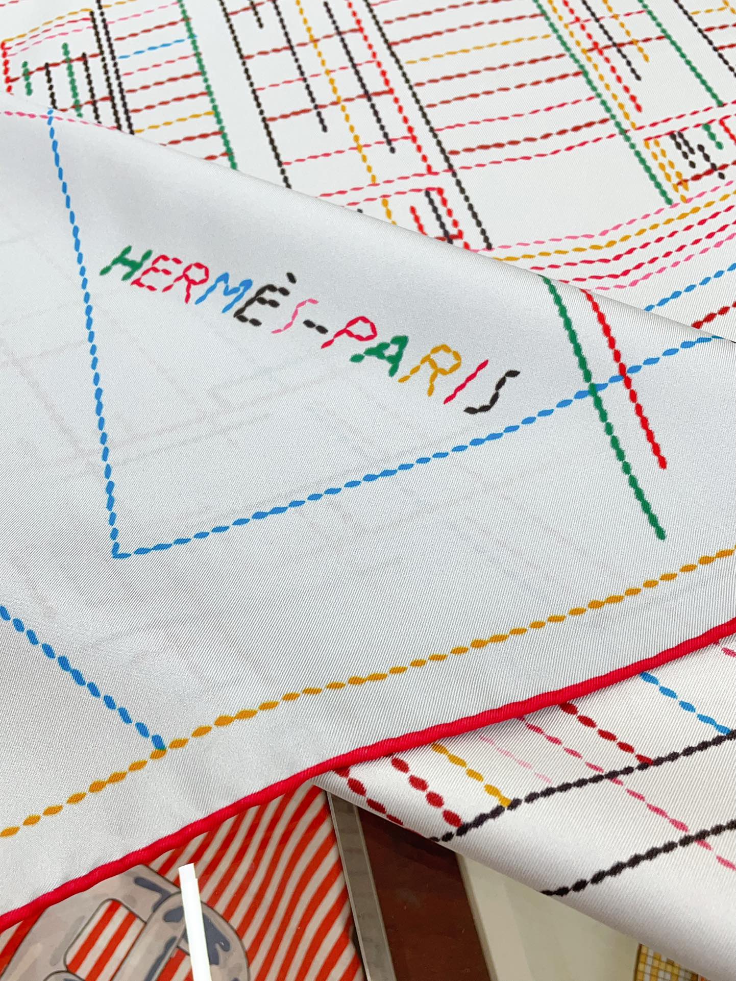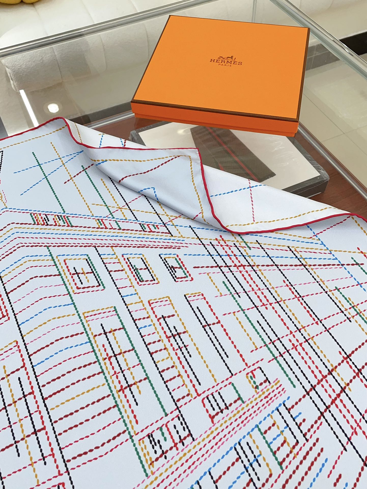 Pique Sellier Shawl 90 CM In Grey White Colorful Silk Twill 312869