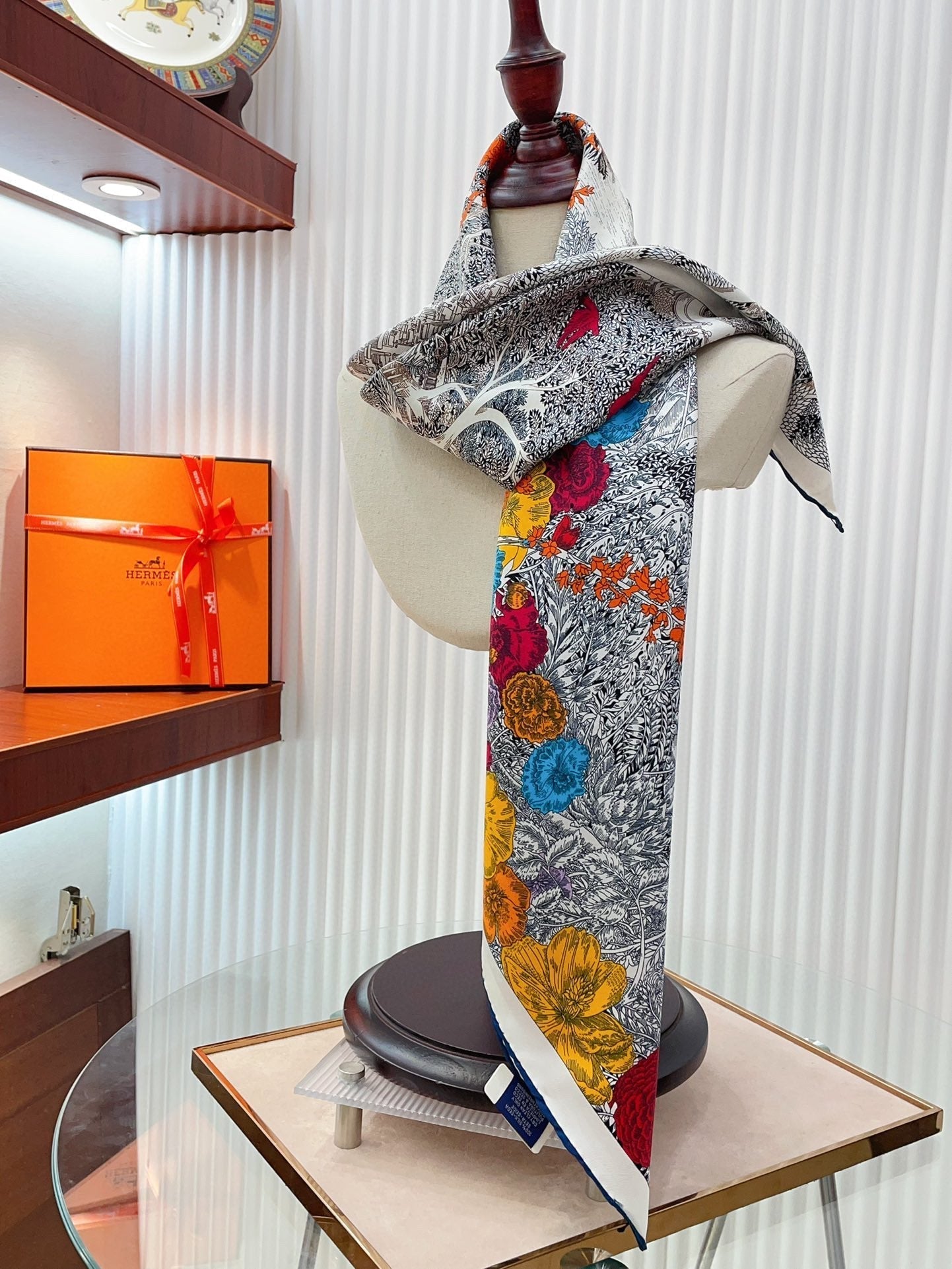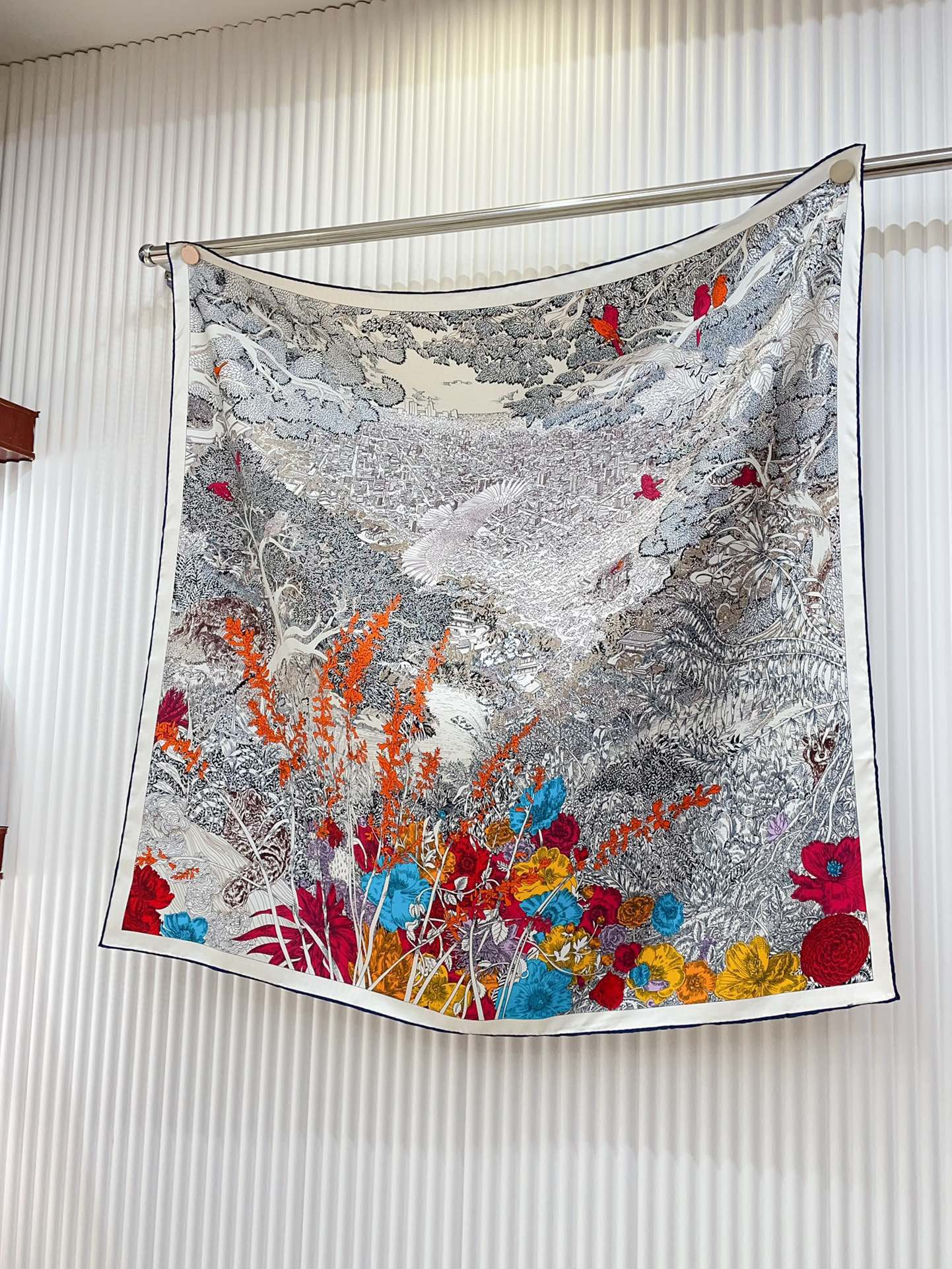Retour A La Nature Shawl 90 CM In Grey Colorful Silk Twill 198583