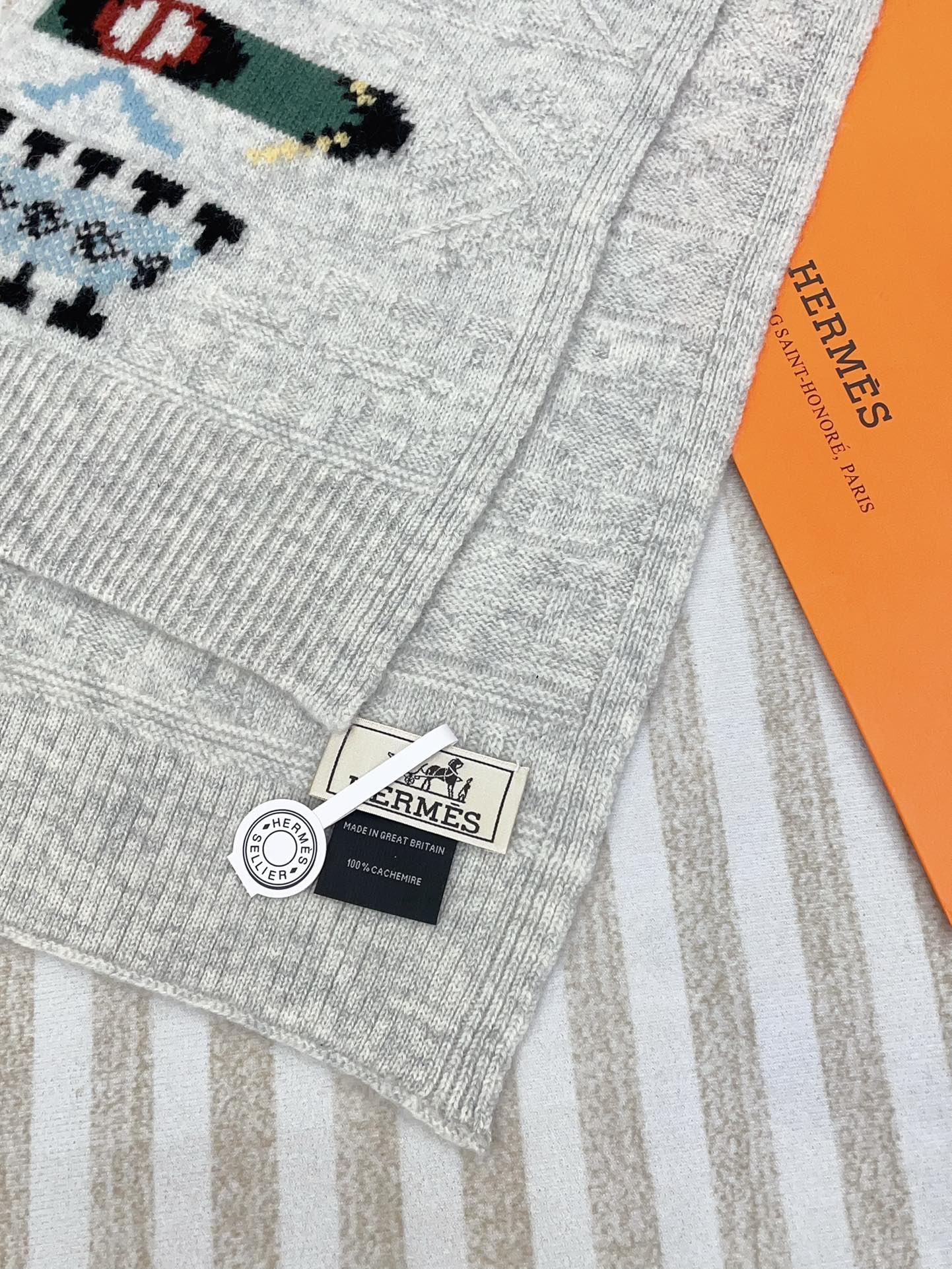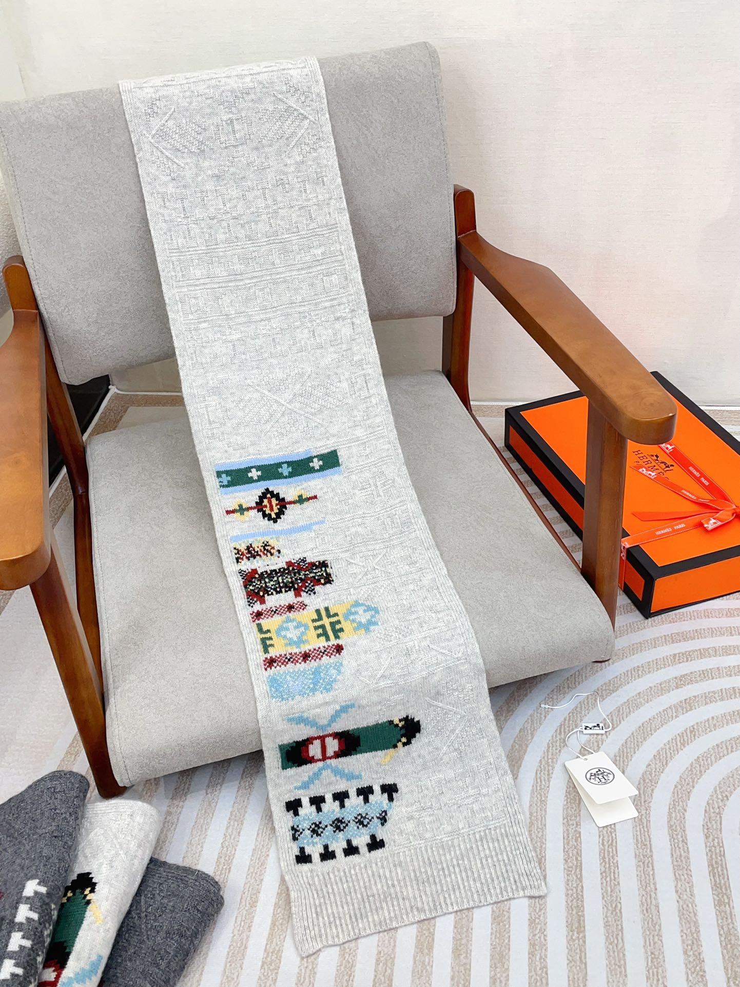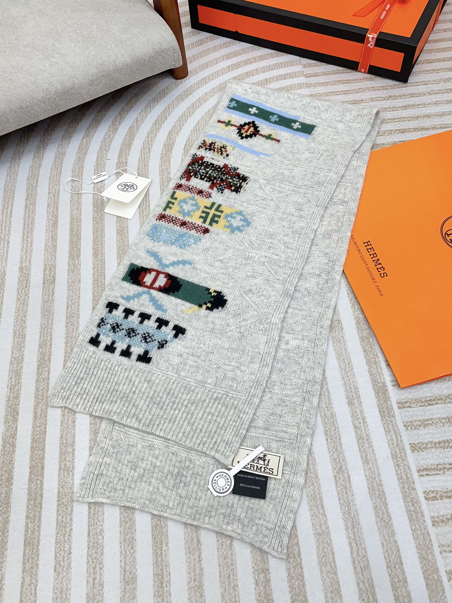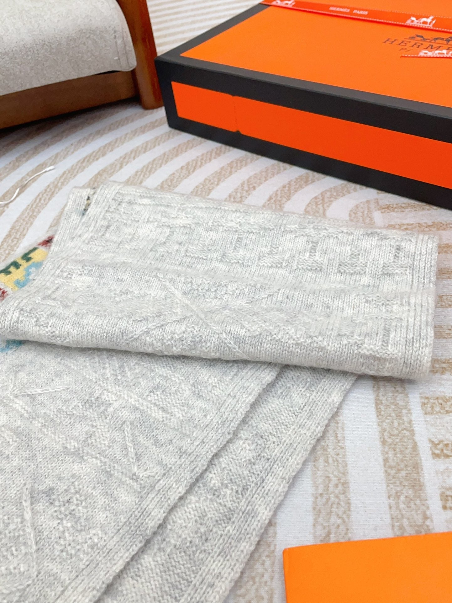 Scarf 120 CM In White Grey Hand Woven Cashmere 401166