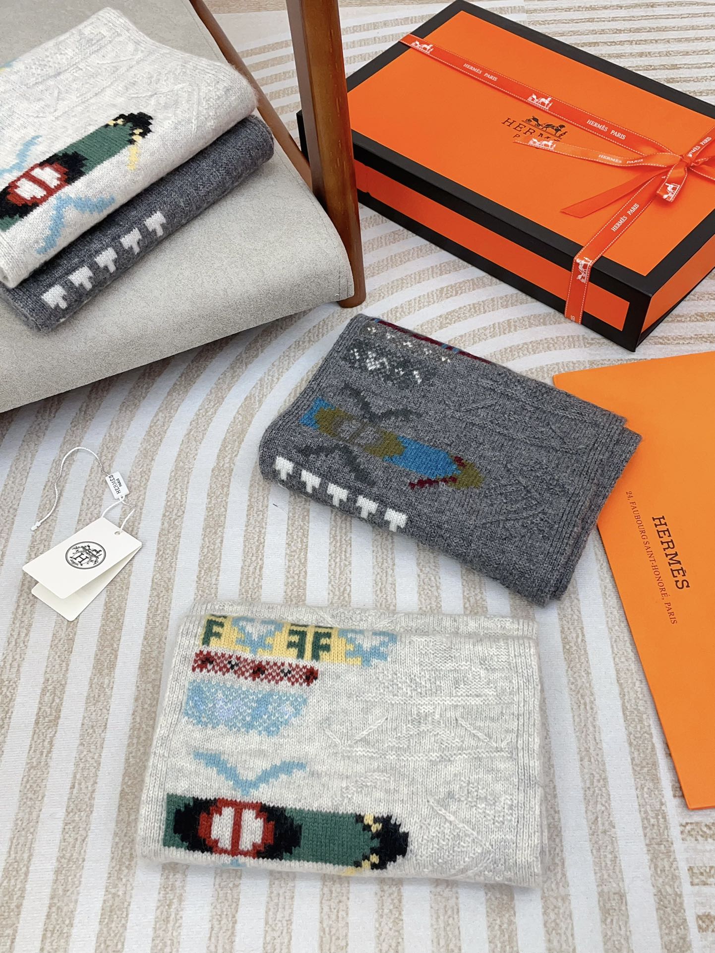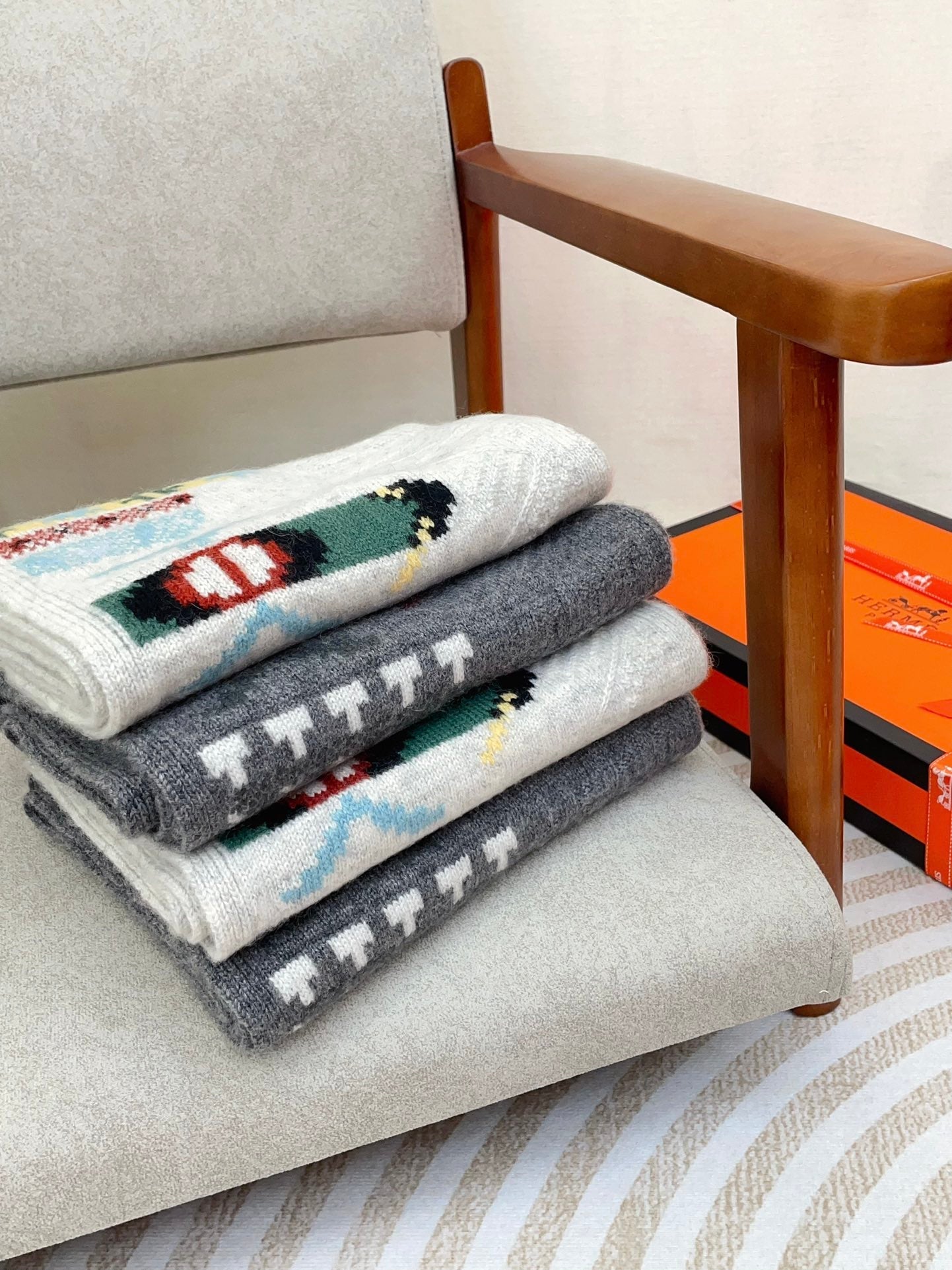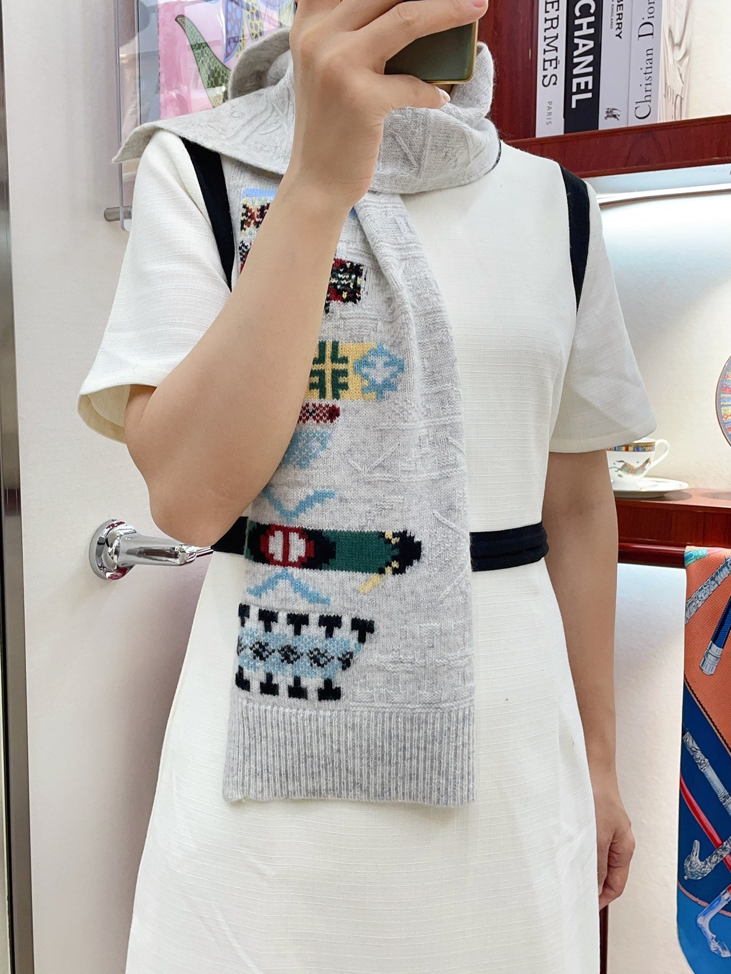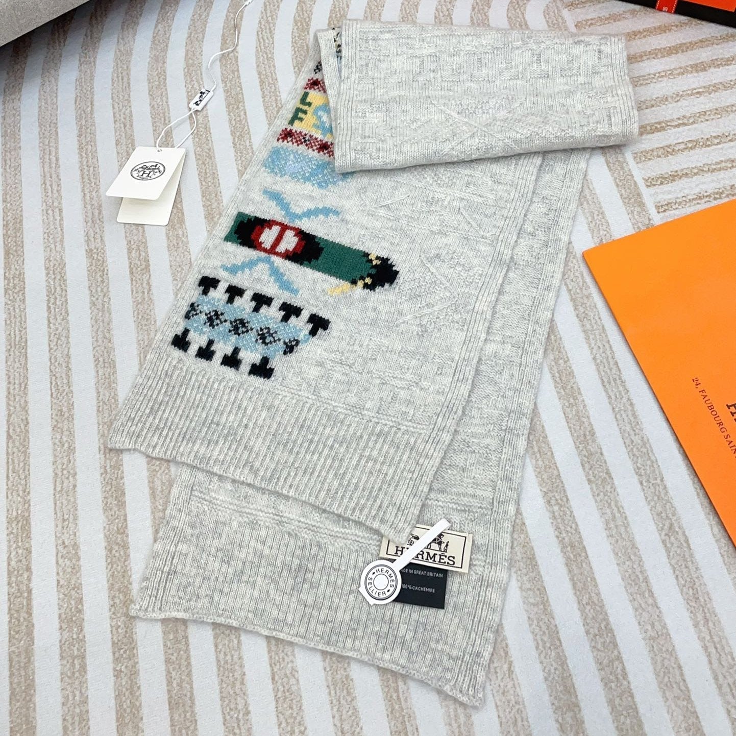 Scarf 120 CM In White Grey Hand Woven Cashmere 401166